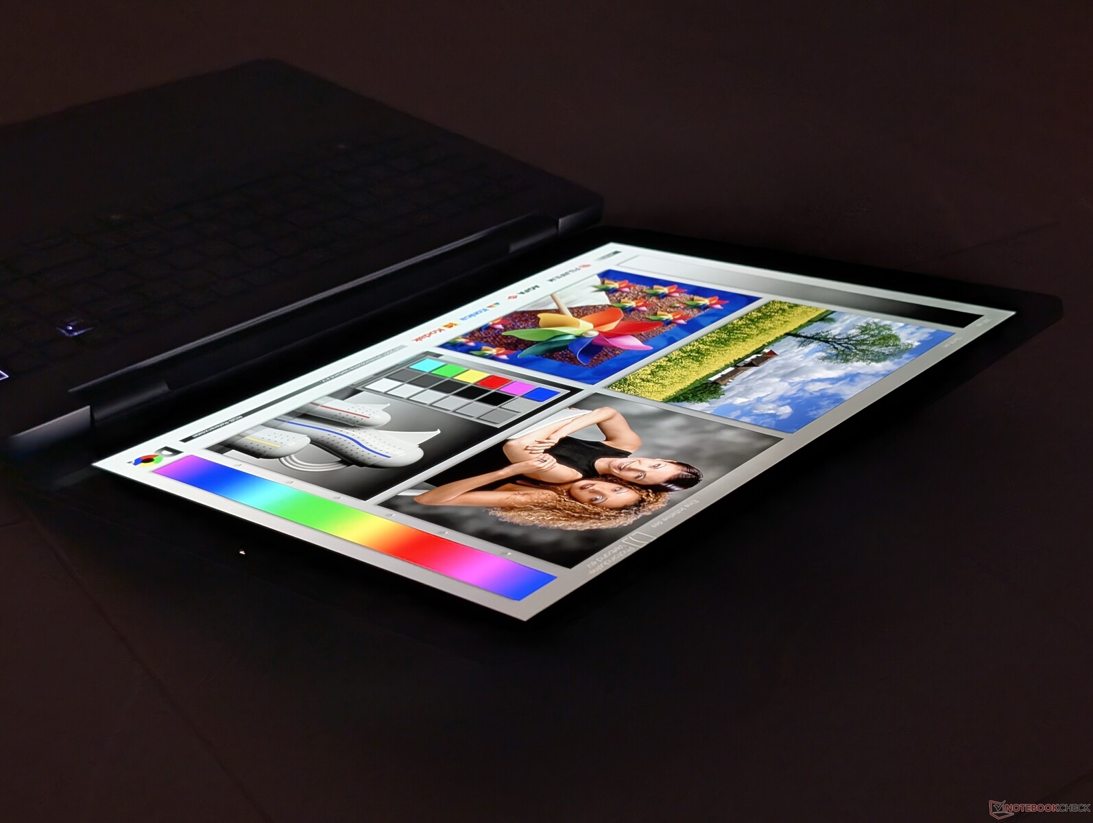 Максимальная яркость достигает ~550 нит в режиме SDR или 1066 нит при включении режима HDR. таким образом, воспроизведение 4K HDR не хуже или лучше, чем у большинства потребительских ноутбуков уровня энтузиастов.