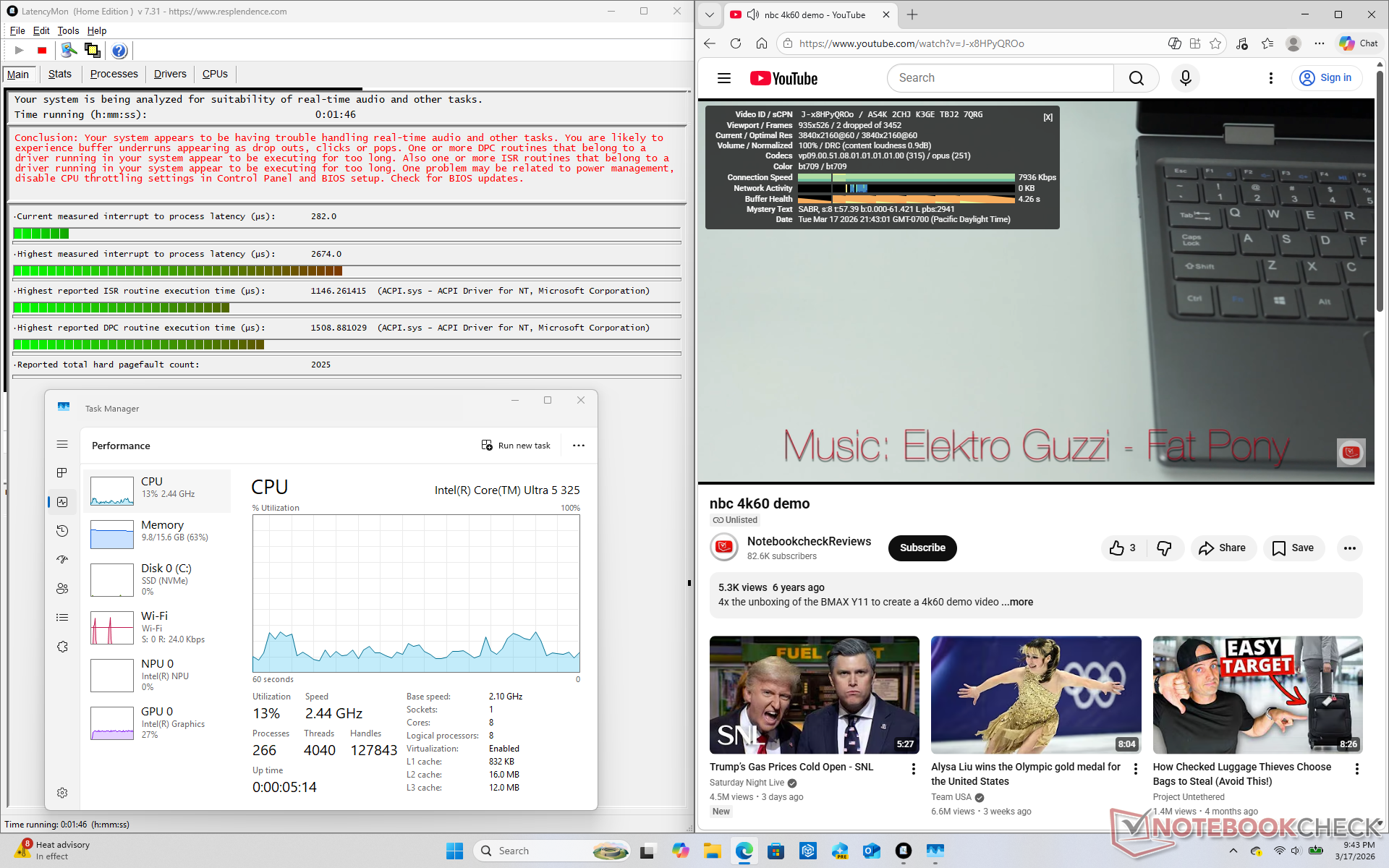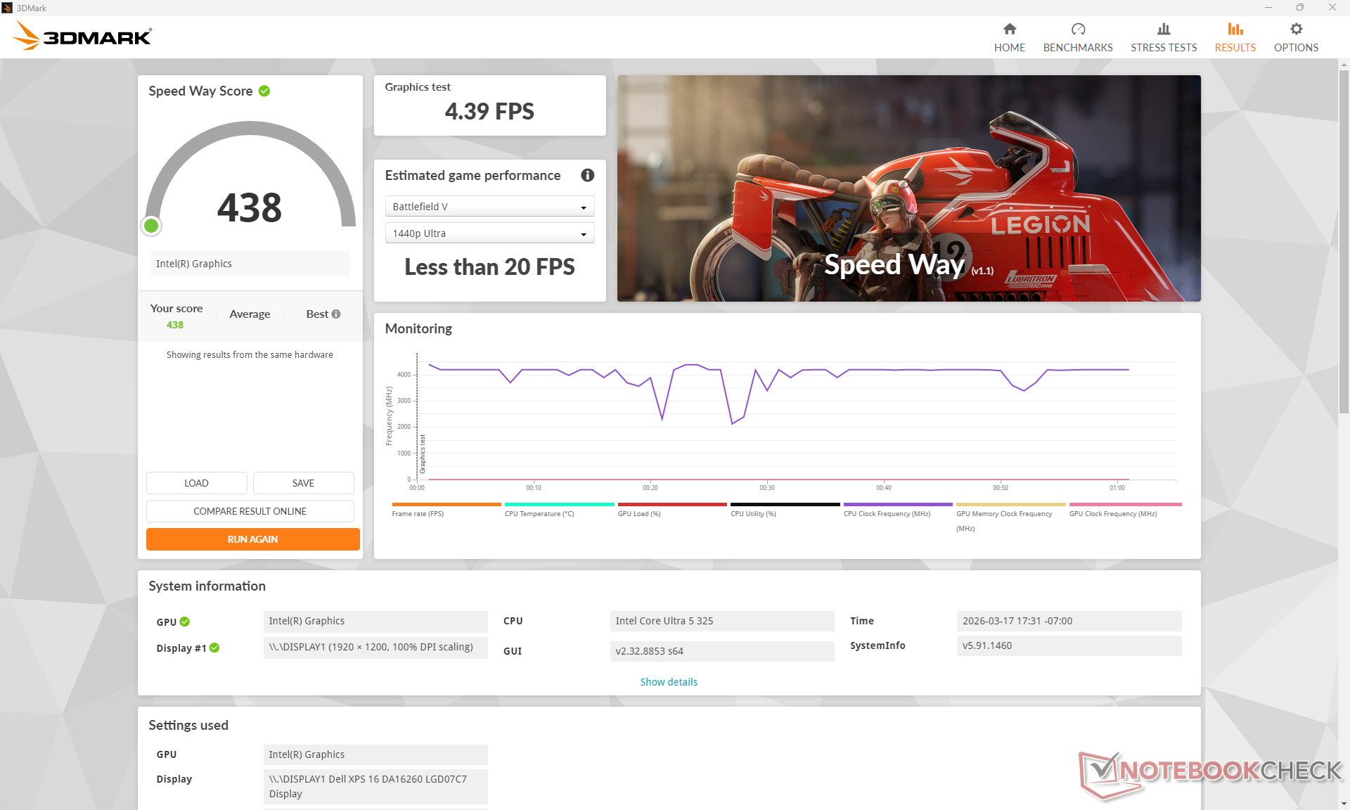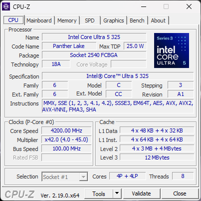 Panther Lake сочетает в себе эффективность Lunar Lake-V с высокой производительностью Arrow Lake-H, что позволяет получить лучшее из двух миров. В режиме простоя на рабочем столе при минимальной яркости потребляется всего 1,3 Вт, что чрезвычайно мало, особенно для 16-дюймового форм-фактора. При запуске игр потребление остается очень низким - чуть менее 50 Вт из-за отсутствия дискретного GPU. Если бы вместо него был установлен Core Ultra X7, то потребление в играх было бы всего на несколько ватт больше, исходя из того, что мы работали с XPS 14 что позволяет получить одни из самых высоких показателей производительности на ватт среди всех ноутбуков с iGPU.