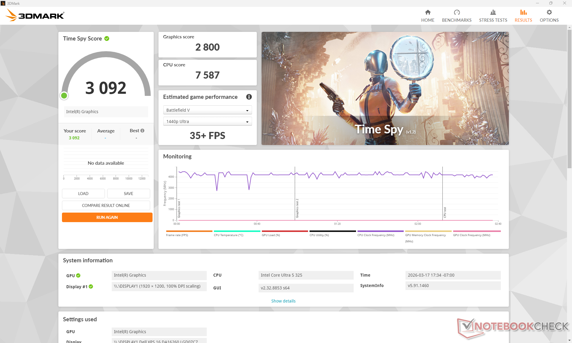 | Средняя тактовая частота процессора (ГГц) | Тактовая частота графического процессора (МГц) | Средняя температура процессора (°C) | |