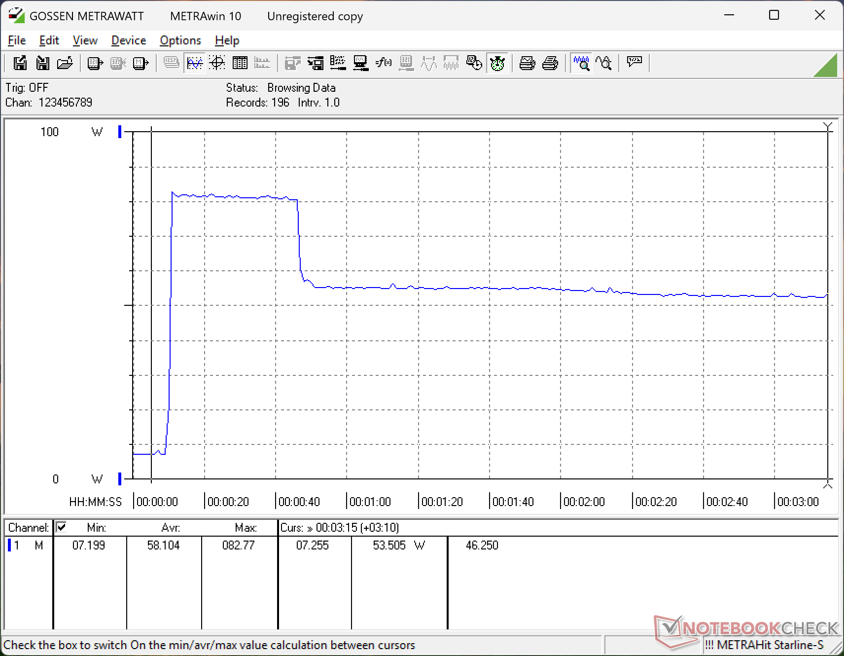 Нам удалось зафиксировать временное максимальное потребление 83 Вт от небольшого (~10,2 x 5,5 x 2,2 см) 100-ваттного универсального адаптера USB-C, когда процессор работает с полной нагрузкой.
