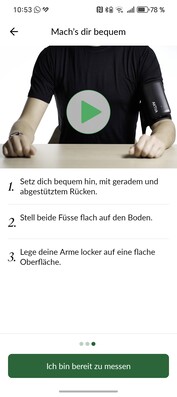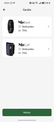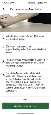 Для этого используется поставляемая в комплекте манжета (Bluetooth 4.2), которую можно легко сопрячь в приложении. Как только приложение распознает, что оба устройства подключены, можно приступать к процессу калибровки, который сопровождается пошаговыми инструкциями. При желании можно воспроизвести видео, чтобы еще раз объяснить отдельные шаги. Калибровка выполняется путем проведения трех последовательных измерений, при этом ремешок Hilo надевается на слабую руку, а манжета - на противоположную. В нашем обзоре это работает без проблем, и мы считаем, что настройка очень понятна и проста, даже для людей, которые не очень хорошо разбираются в технике.