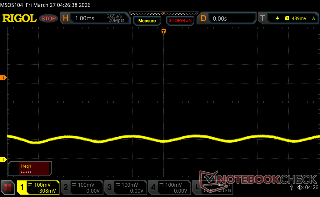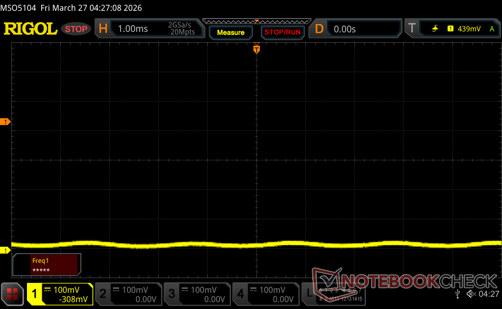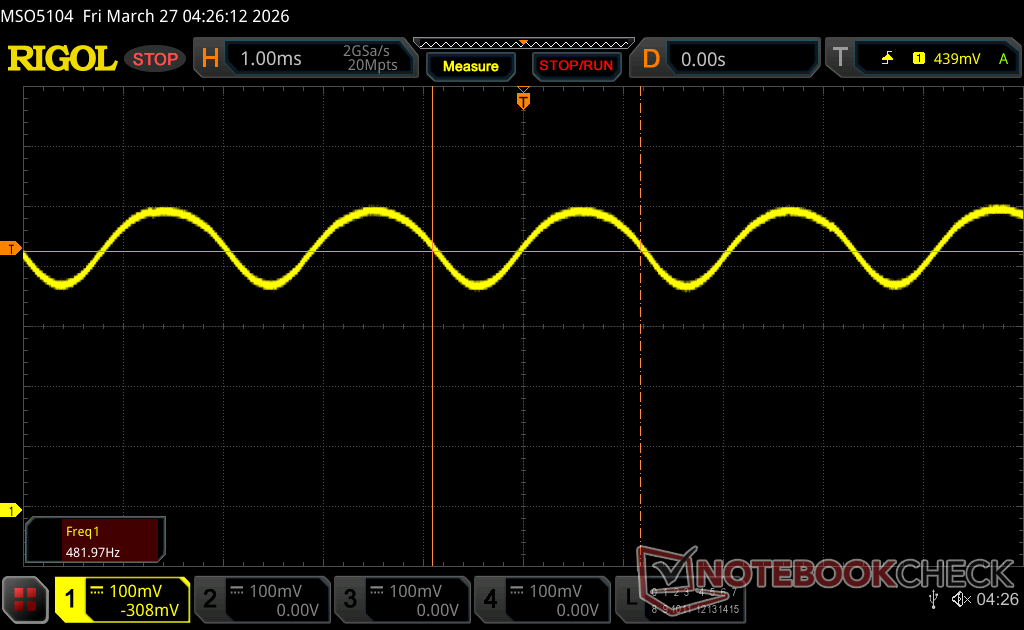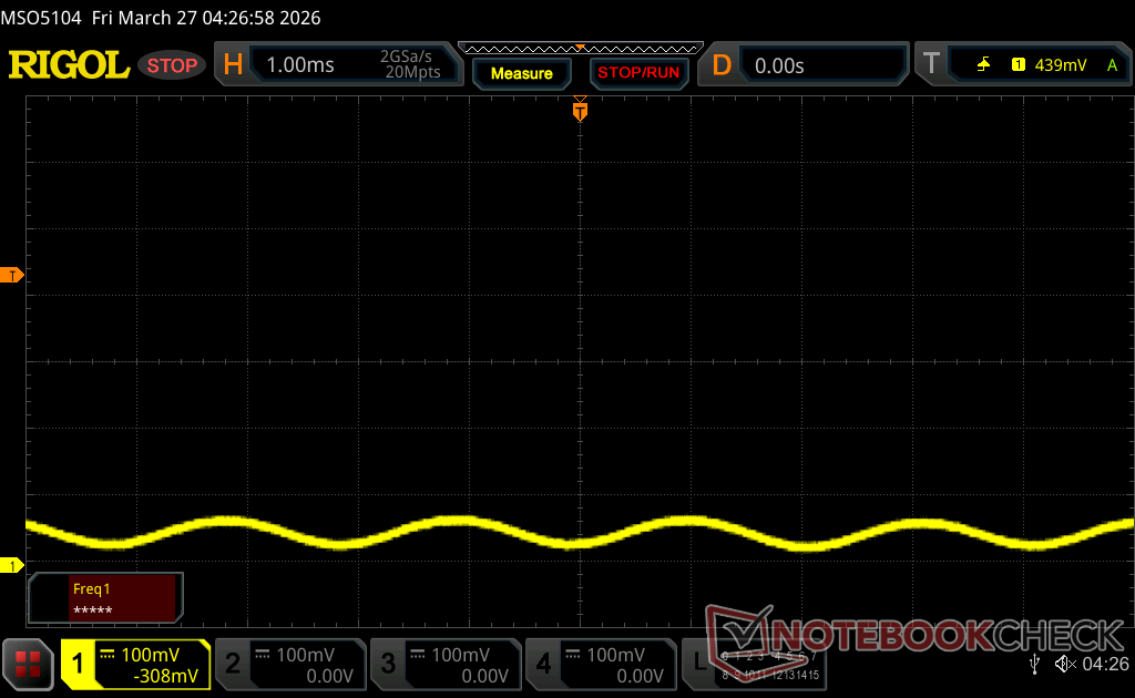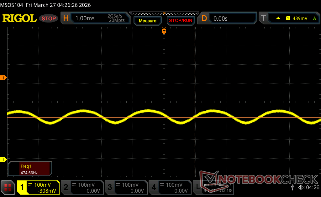 Подсветка дисплея мигает с частотой 474.6 Гц (худший случай, например, при использовании ШИМ) Этот эффект присутствует при яркости 100 % и ниже. Стоит заметить, что частота 474.6 Гц достаточно велика. Поэтому мерцание экрана вряд ли будет иметь негативное влияние на самочувствие. Для сравнения, 53 % известных нам устройств не применяют PWM для изменения яркости, а среди тех, где PWM используется, типичная частота модуляции составляет 7940 Гц (мин. 5 Гц, макс. 343500 Гц). | |||