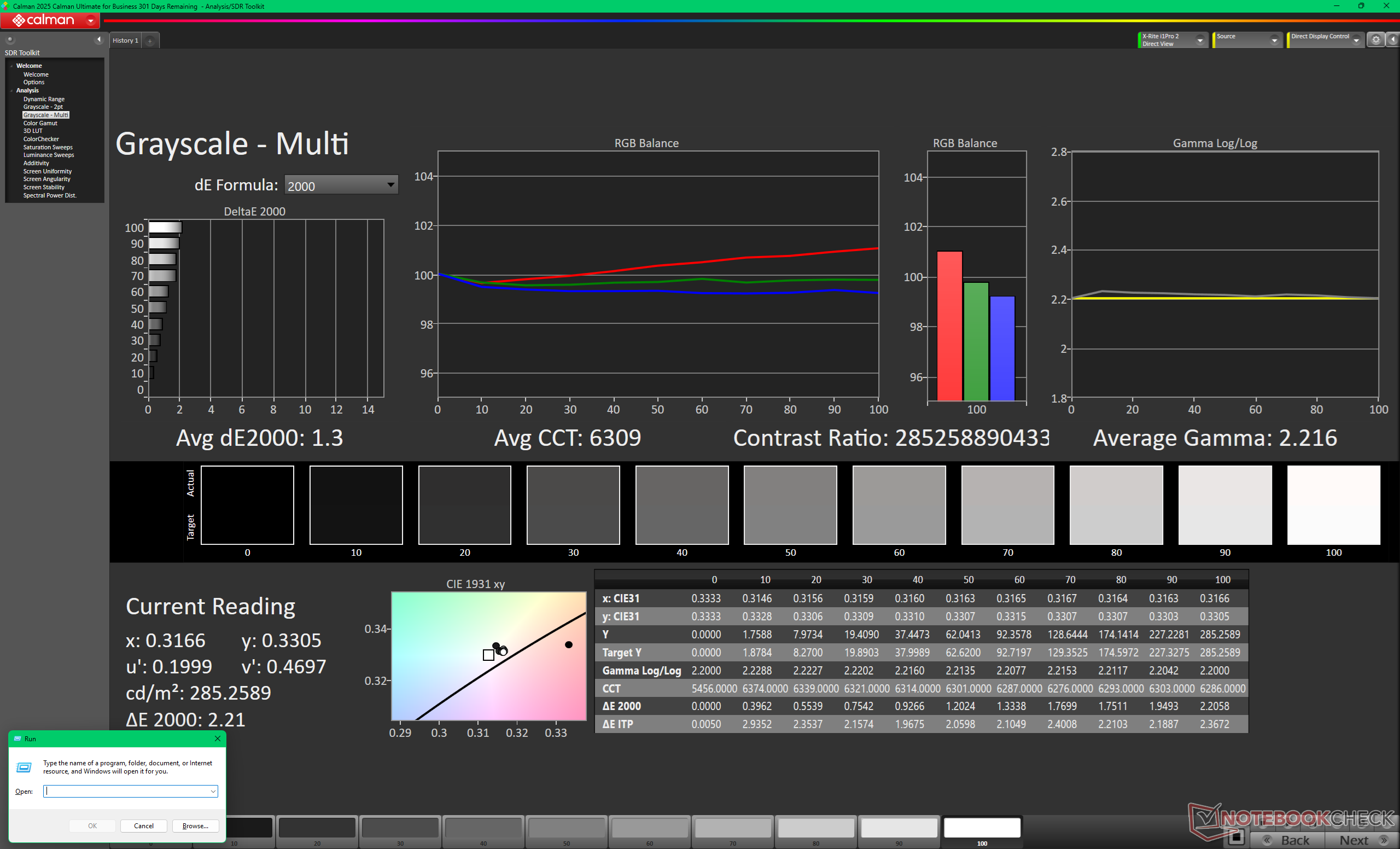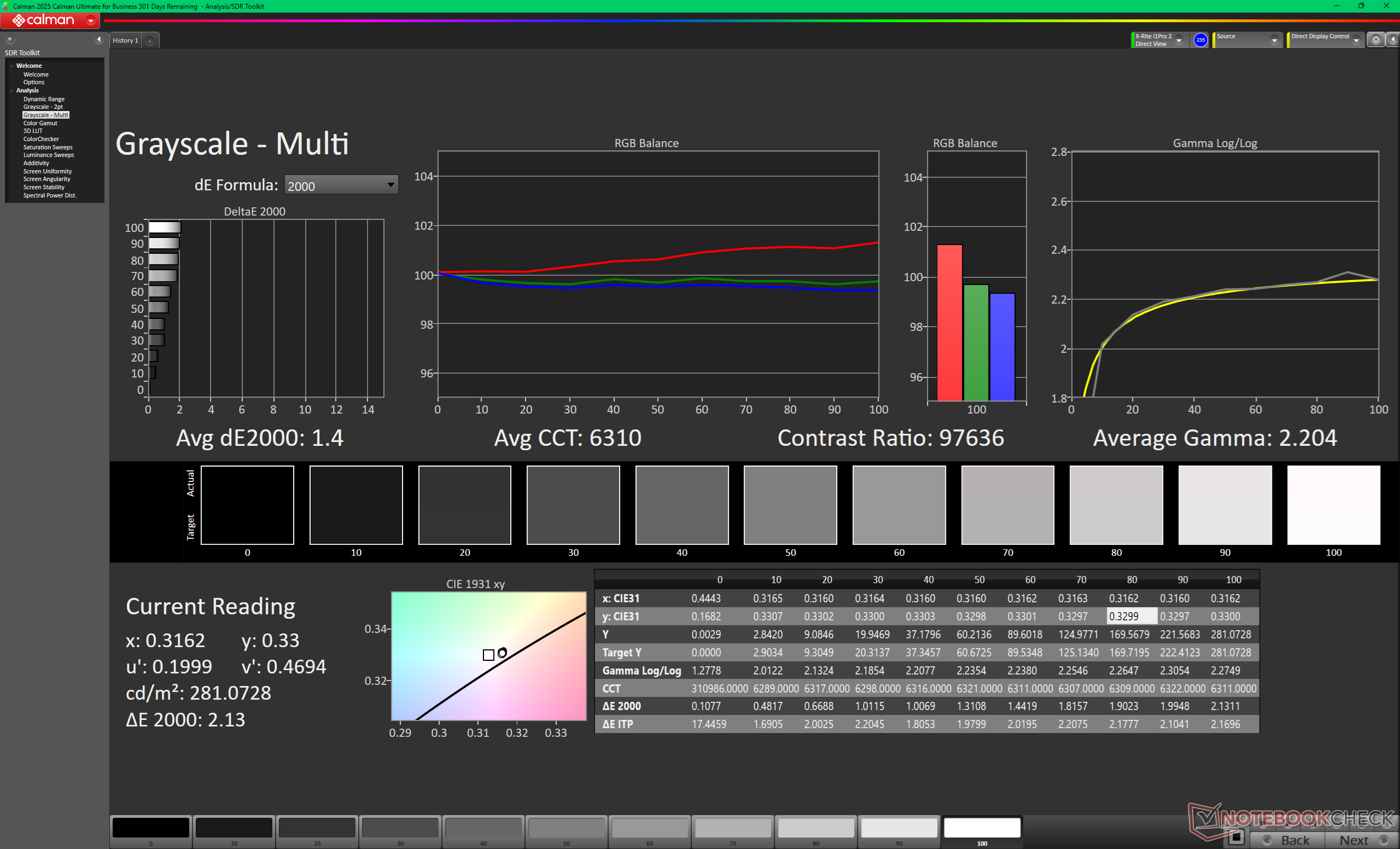 ΔE Greyscale Calman: 1.3 | ∀{0.09-98 Ø4.99}