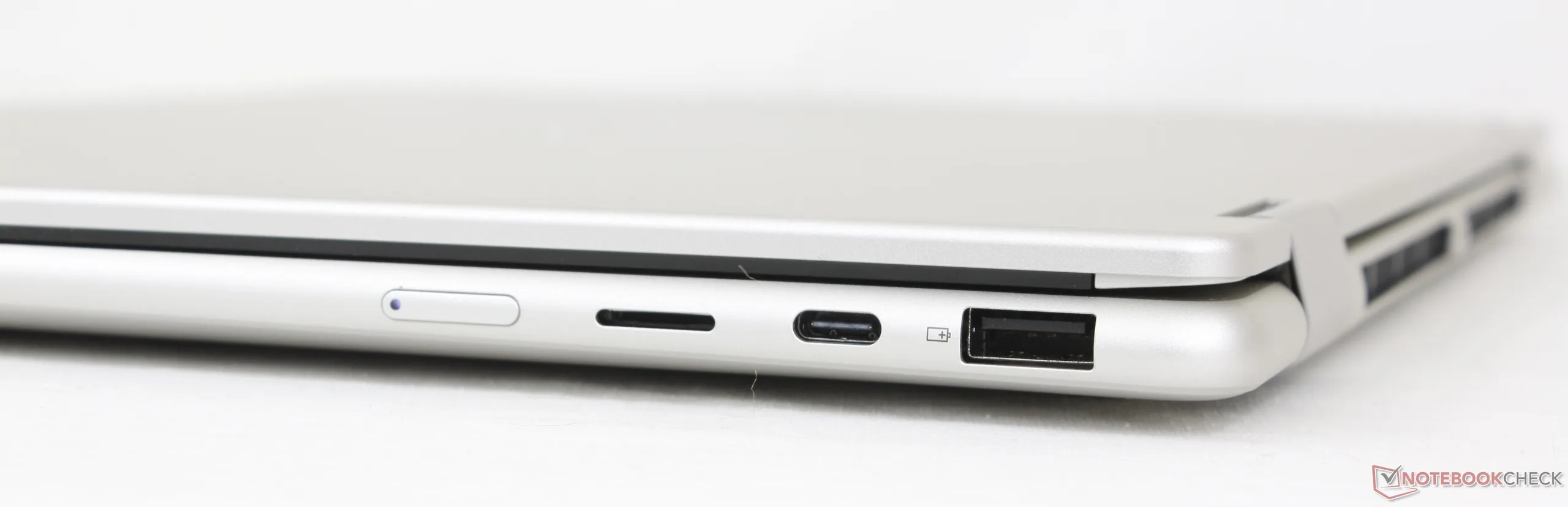 Модель 2026 Yoga 7 2-в-1 16 имеет тот же внешний дизайн, что и модель 2025 года и поэтому все наши комментарии к прошлогодней модели остаются в силе. Имейте в виду, что хотя опции портов остались прежними, порты USB-C на нашей модели AMD не поддерживают Thunderbolt и имеют скорость всего 10 Гбит/с, в то время как те же порты USB-C на модели 2025 Intel работают гораздо быстрее - до 40 Гбит/с.