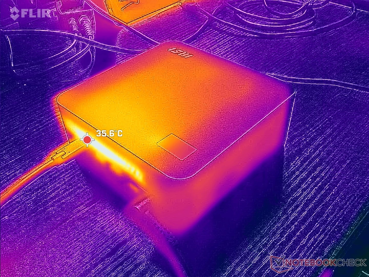 Небольшой адаптер переменного тока мощностью 120 Вт остается относительно прохладным при температуре менее 35 C под нагрузкой.