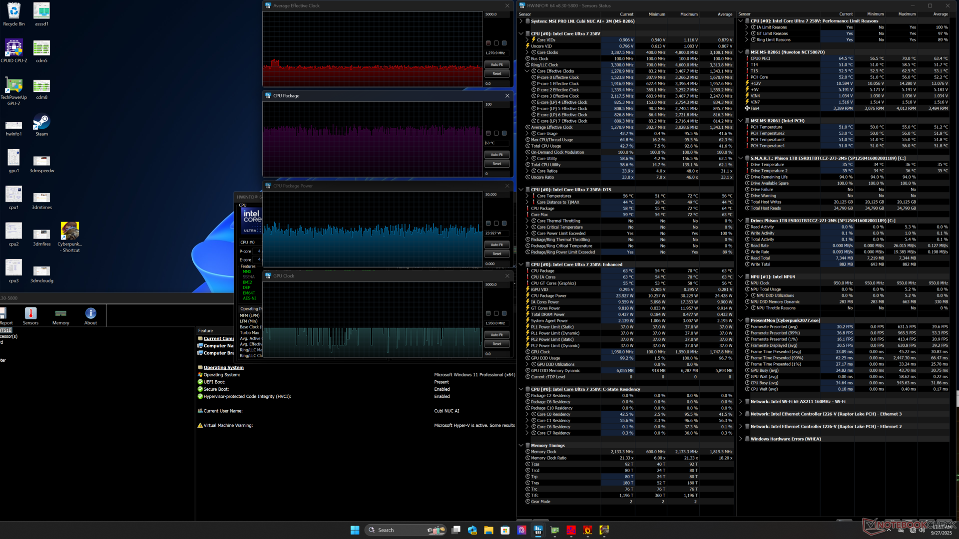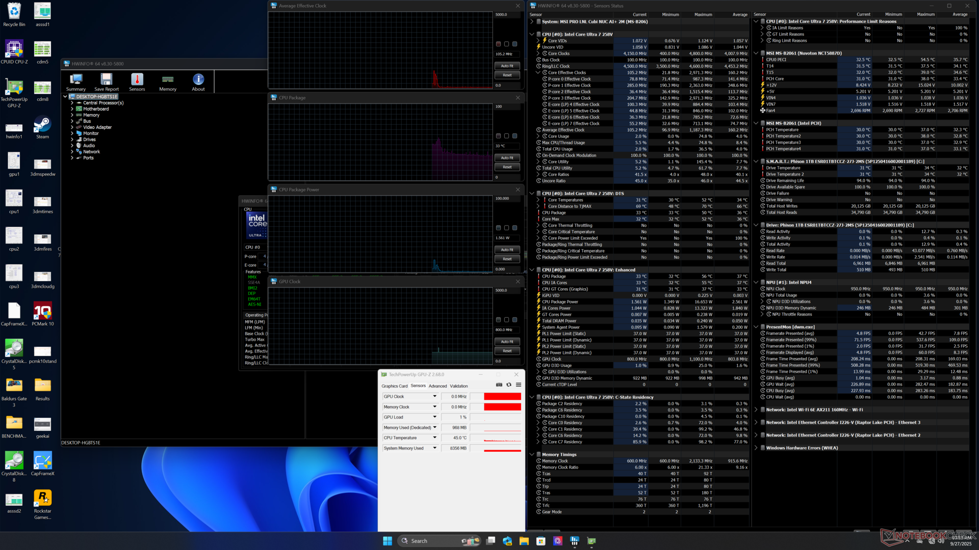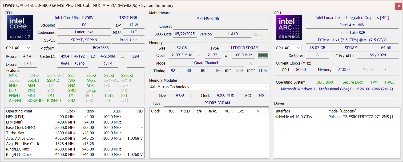 Core Ultra 7 258V почти на 50 процентов быстрее, чем старшая модель Core 7 150U в прошлогоднем Cubi NUC 1M, когда речь идет о многопоточной производительности. Он также оснащен встроенным NPU, в то время как в Nuc 1M его не было для поддержки Co-Pilot+.