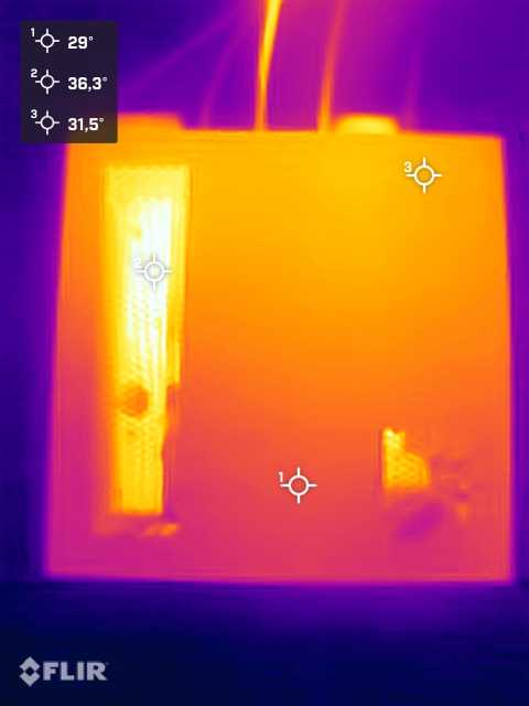 (+) При отсутствии вычислительной нагрузки верх корпуса нагревается в среднем до 27.9 град. Типичное значение для устройств этого же класса = 32.4 градуса (-ов).