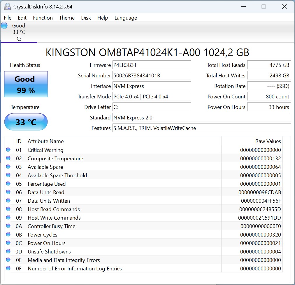 (+) Макс. температура верха корпуса составила 33.4 град. Цельсия. Типичное значение для устройств этого же класса (Mini PC) = 35.9 градуса (-ов) при минимуме в 21.4 град. и максимуме в 69.5 град.