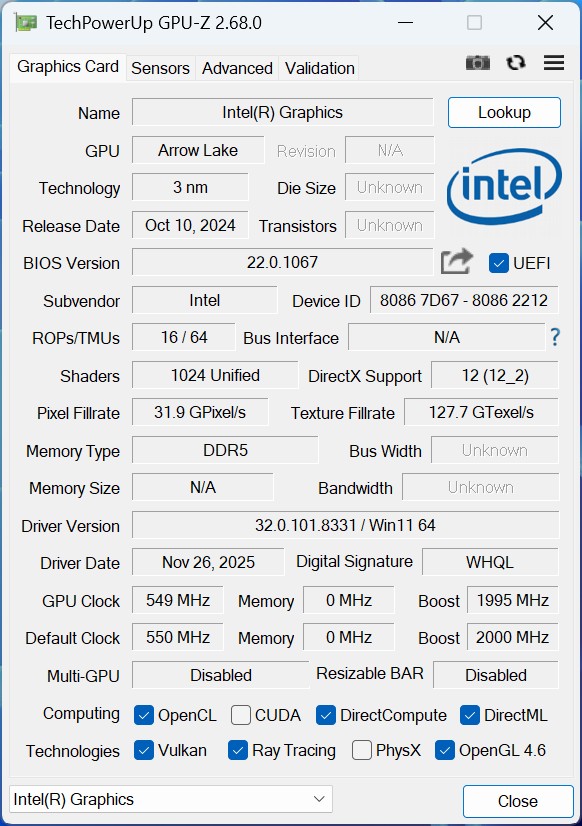 | GMK EVO-T1 Intel Core Ultra 9 285H ⎘ Intel Arc Graphics 140T ⎘ 64 Гбайт ОЗУ, 1024 Гбайт SSD | Amazon: Прейскурантная цена: 999€ | 946 г | 151 x 154 x 73.6 мм | |