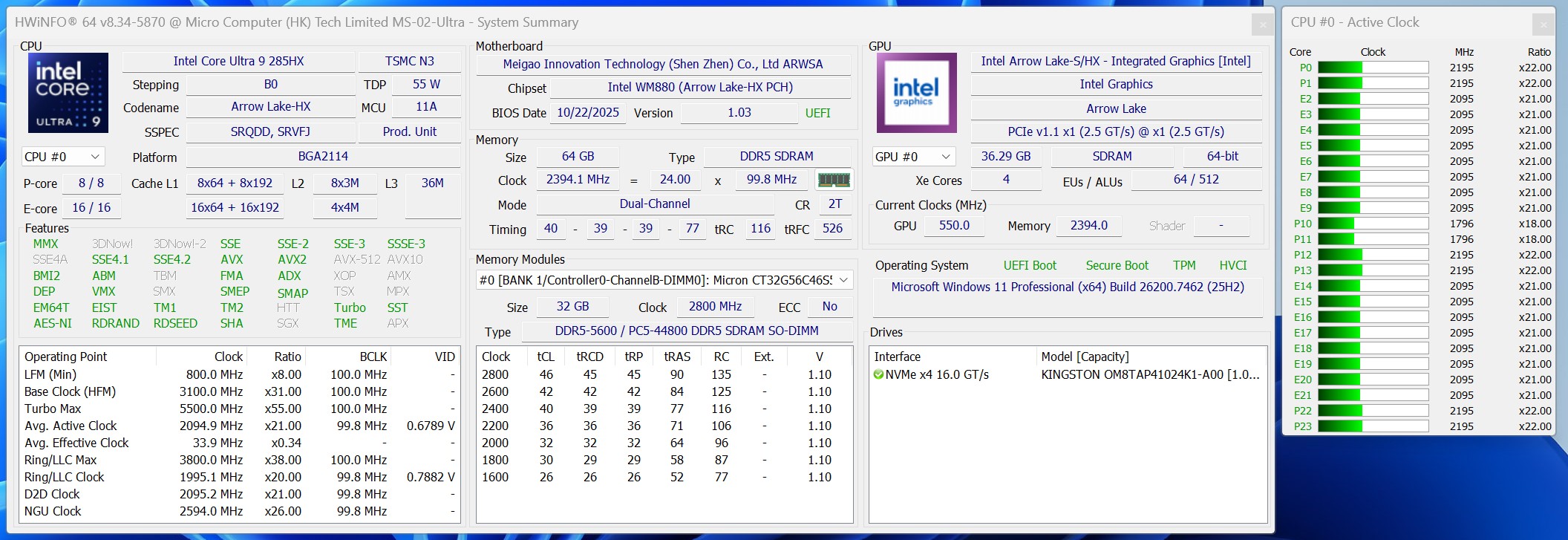 | Minisforum MS-02 Ultra Intel Core Ultra 9 285HX ⎘ Intel Graphics 4-Core iGPU (Meteor / Arrow Lake) ⎘ 64 Гбайт ОЗУ, 1024 Гбайт SSD | Amazon: 1. $1,279.99 MINISFORUM MS-02 Ultra Works... 2. $1,499.90 MINISFORUM MS-02 Ultra Works... 3. $2,999.00 MINISFORUM MS-02 Ultra Works... Прейскурантная цена: 1279€ | 3.5 килог. | 225 x 220 x 98 мм | |