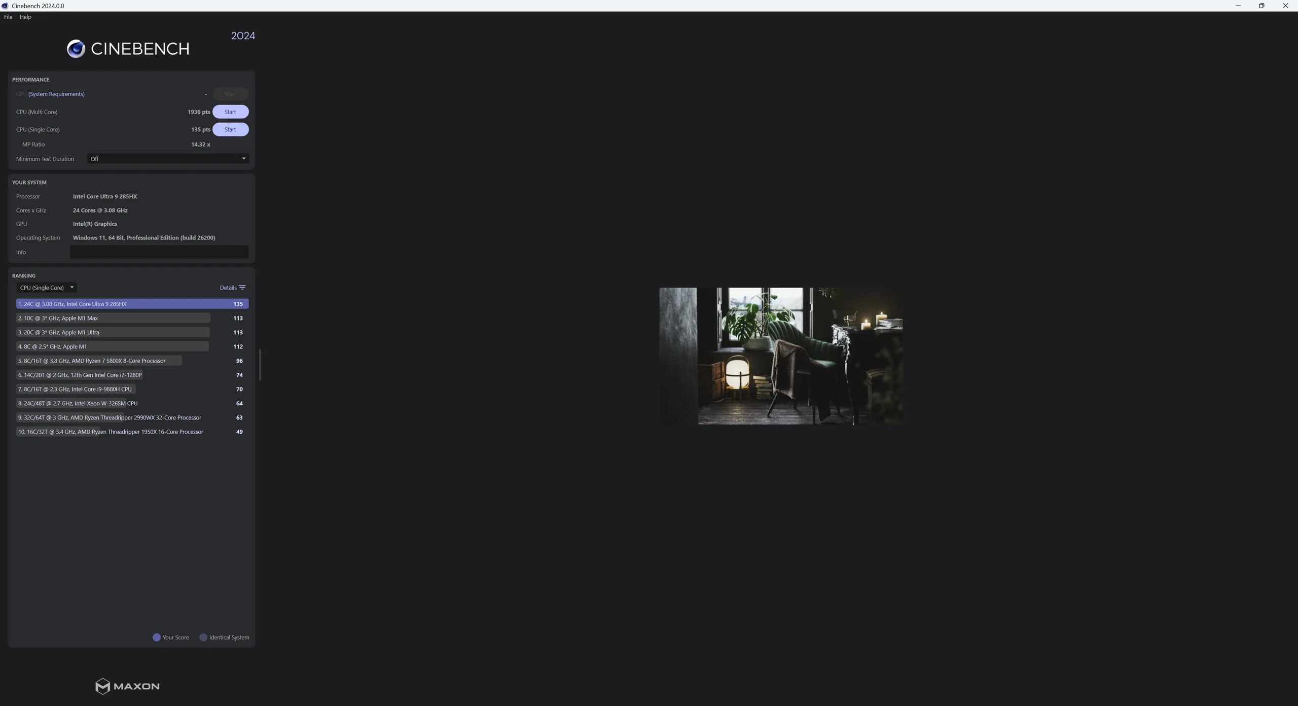 За счет Intel Core Ultra 9 285HX Minisforum MS-02 Ultra обладает огромной вычислительной мощностью, что позволяет использовать его в качестве рабочей станции. Находясь на расстоянии удара от AMD Ryzen AI Max 395+ или AMD Ryzen 9 9955HX, наш тестовый образец вынужден признать свое поражение лишь с небольшим отрывом. Мощный блок охлаждения обеспечивает постоянное энергопотребление до 100 Вт, хотя в течение коротких периодов возможно и до 130 Вт.