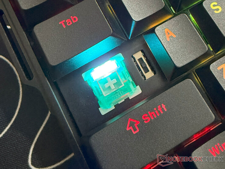 Драйвер для настольного ПК также нуждается в доработке, так как во время нашего тестирования он не смог инициализироваться в режиме 2,4 ГГц. Более того, переключатель беспроводного режима расположен под крышкой Caps Lock, и для переключения с проводного на беспроводной режим его нужно потянуть на себя.