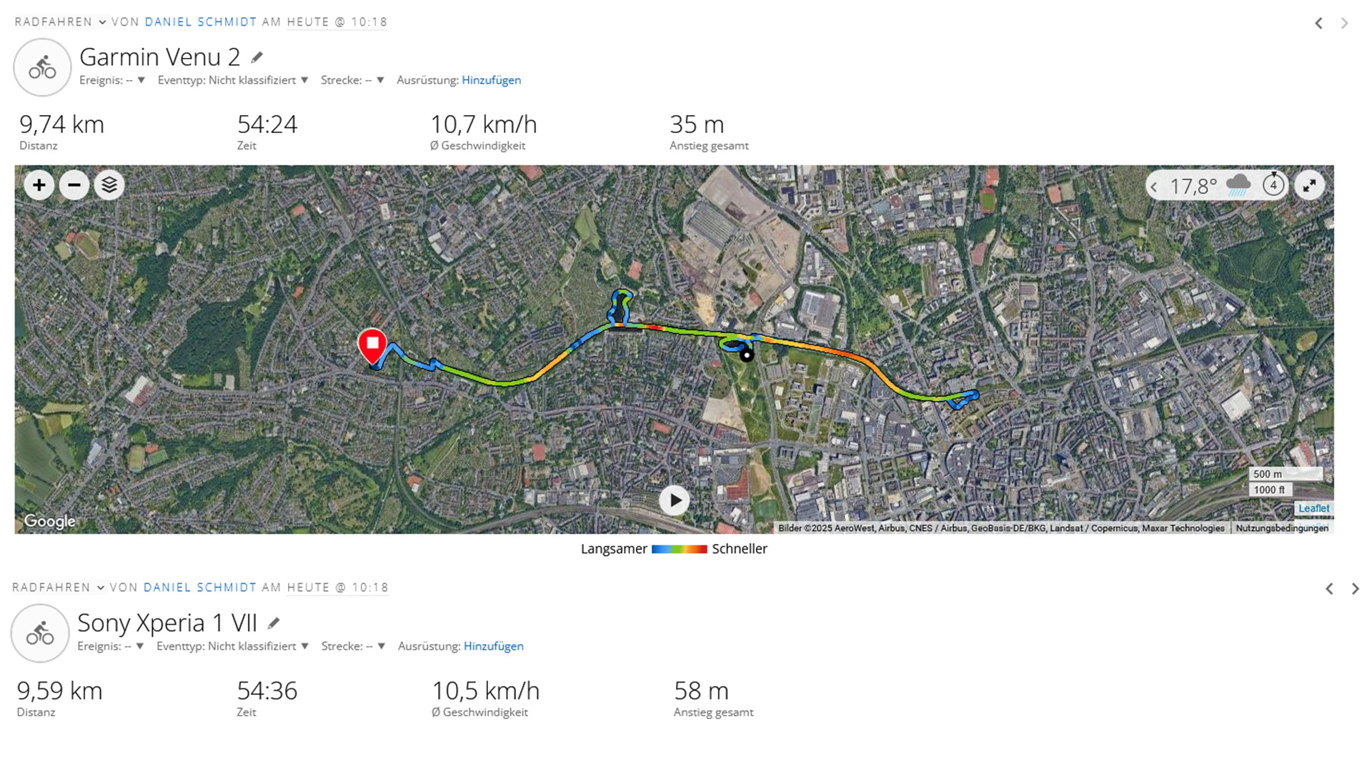 Во время примерно 10-километровой велосипедной прогулки смартфон определял наше местоположение почти так же точно, как фитнес-смарт-часы Garmin Venu 2, что делает его хорошо подходящим для навигации. На более плотно застроенных участках он иногда был даже более точным.