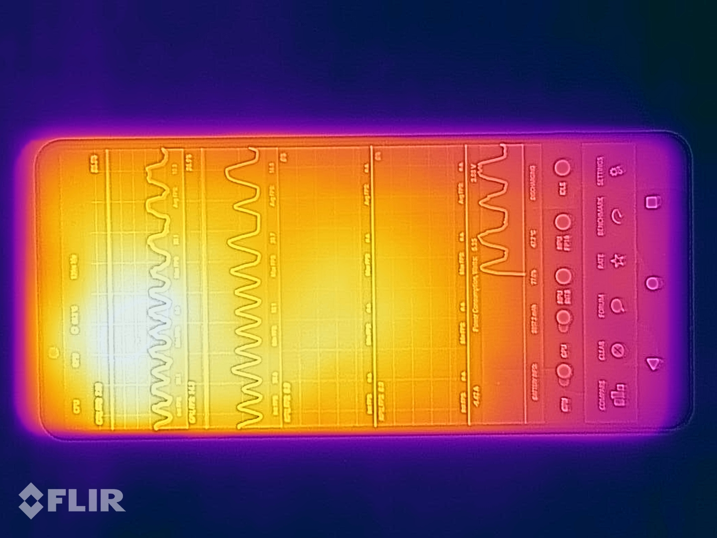 При обычном использовании поверхность Xperia 1 VII оставалась прохладной, но при длительной нагрузке она значительно нагревалась. В стресс-тесте с использованием бенчмарка Burnout мы измерили температуру до 48,3°C.