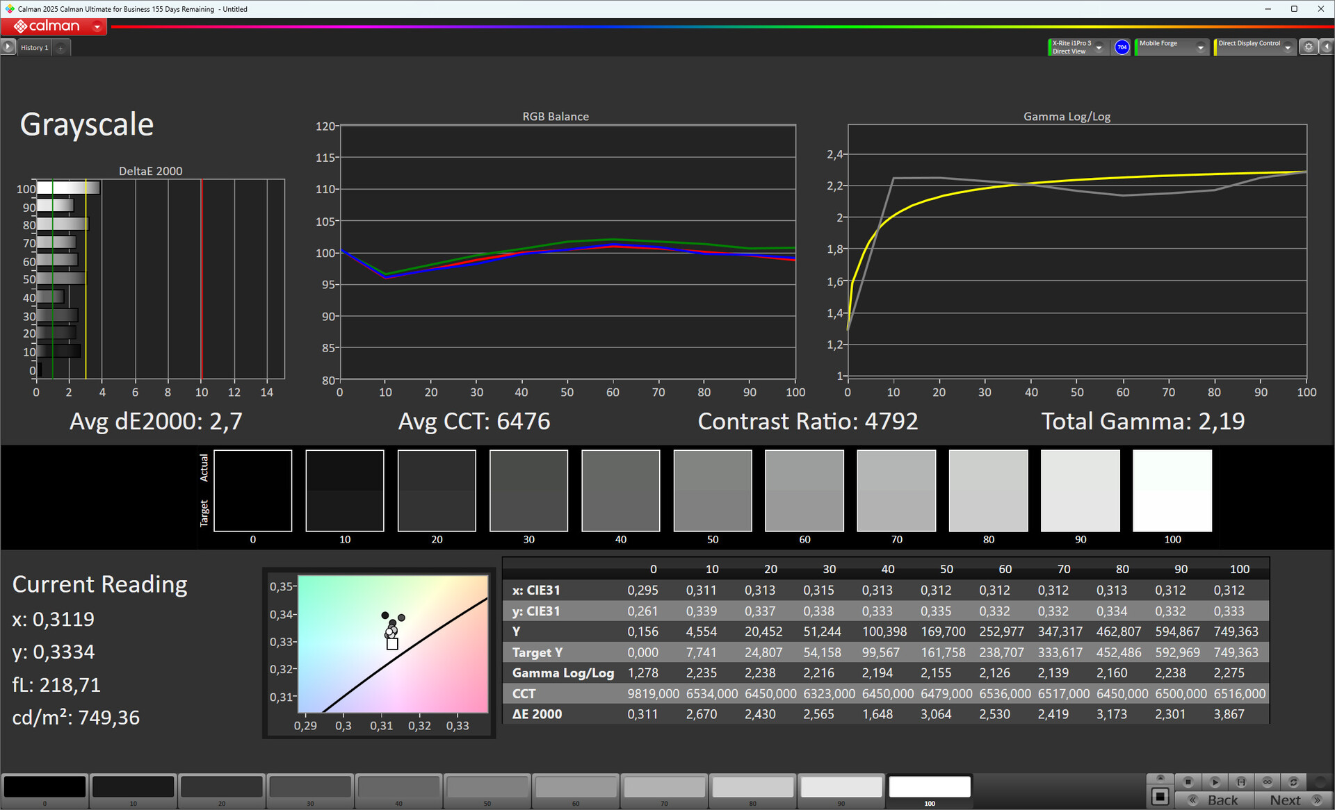 ΔE Greyscale Calman: 2.7 | ∀{0.09-98 Ø5.1}