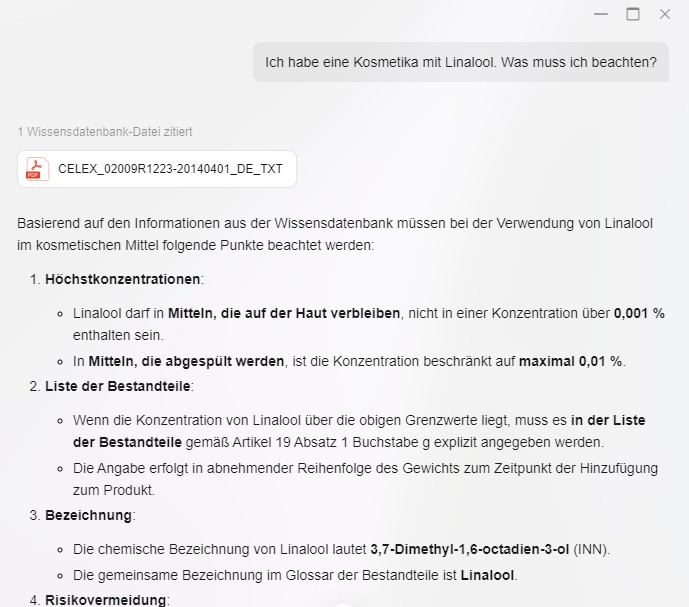 Мы протестировали базу знаний, используя процедуру, которую разработали сами. В частности, она включает в себя поиск 100 PDF-файлов общим объемом 31,4 МБ, в которых прямо и косвенно скрыта определенная информация о человеке. Это позволяет проверить, можно ли вообще найти информацию, и можно ли ее четко выделить. Также проверяется, может ли система, проще говоря, мыслить нестандартно. Кроме того, можно выявить галлюцинации, поскольку у нас есть полный список всей информации, которую мы вставили. В нашем тесте анализ документов занял около 35 минут и мог выполняться в фоновом режиме. Однако эти задачи не интегрированы в центр задач, поэтому пользователи не получают уведомления о завершении анализа.