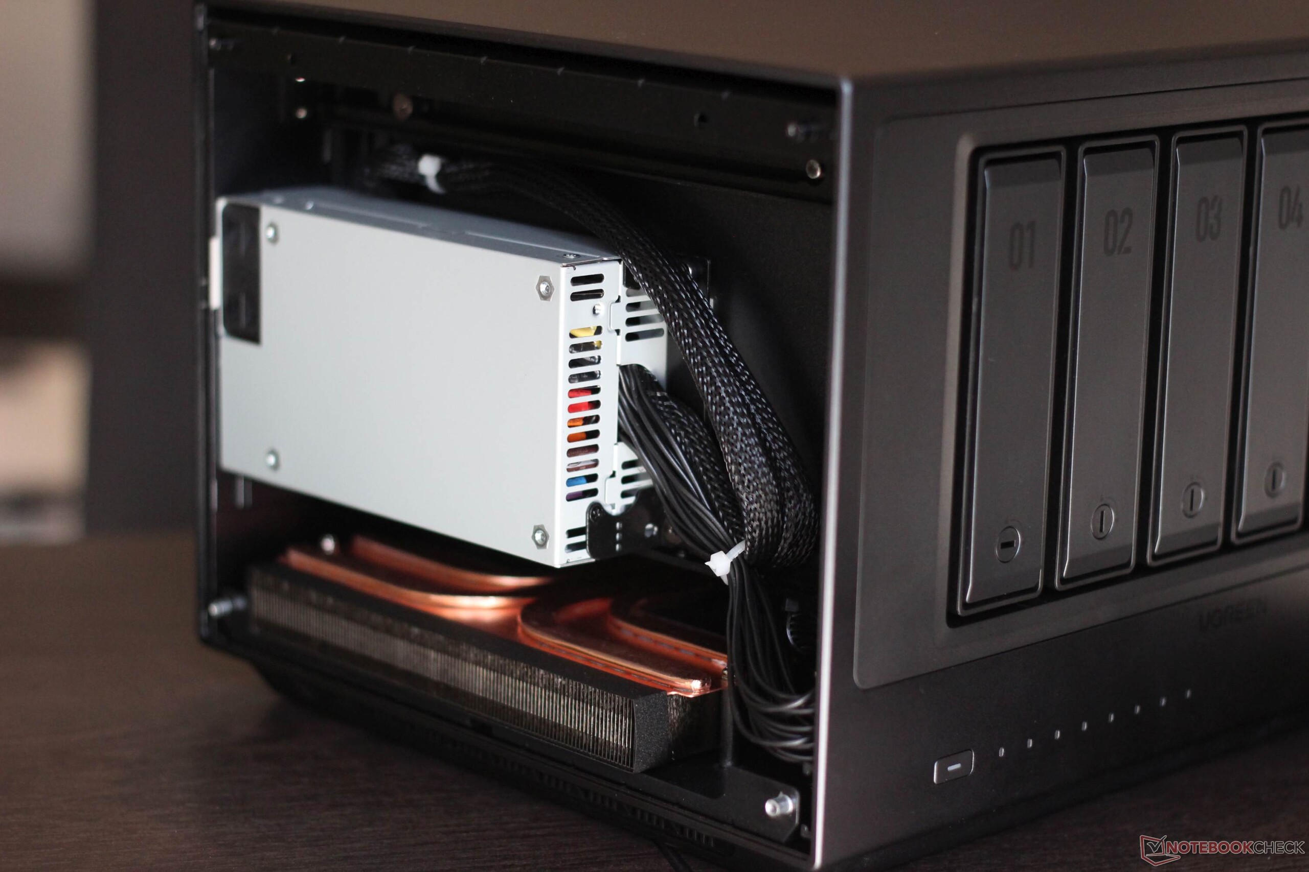 Обе боковые панели можно снять. На правой стороне есть место для двух твердотельных накопителей M.2, а позже можно добавить и карту PCIe. В этом нет ничего необычного для NAS. Например, она позволяет установить дополнительную сетевую карту.