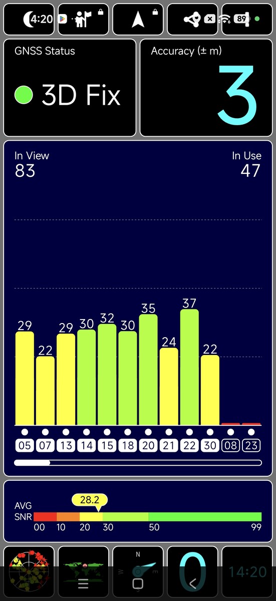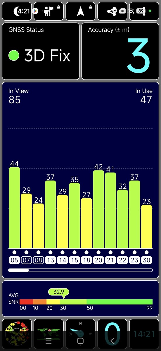 На открытом воздухе Xiaomi 17 Pro быстро засек сигнал спутника и определил свое местоположение с точностью до 3 метров. Для определения местоположения устройство использует основные глобальные спутниковые сети в двухдиапазонном режиме.