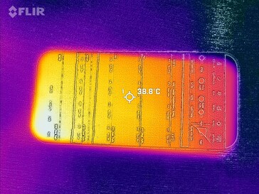 (-) Макс. температура верха корпуса составила 48.7 град. Цельсия. Типичное значение для устройств этого же класса (Smartphone) = 35.2 градуса (-ов) при минимуме в 21.9 град. и максимуме в 247 град.