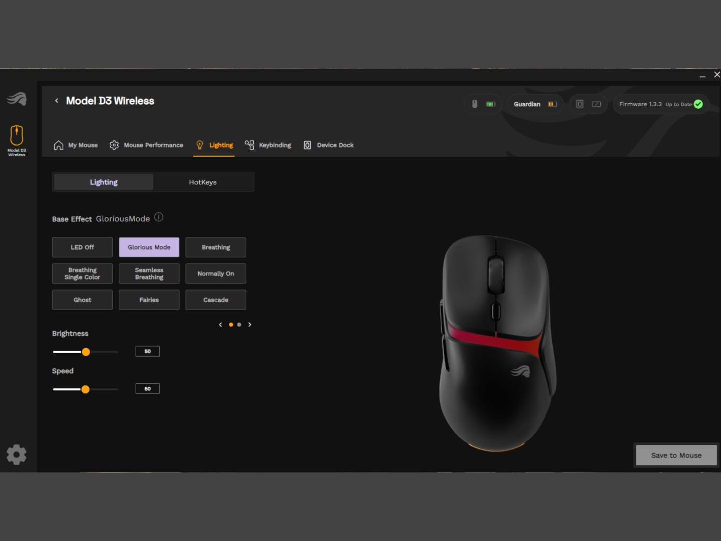 Хотя время автономной работы не соответствует заявленному, система InfinitePlay работает так, как заявлено. Если у Вас закончился съемный аккумулятор, устройство автоматически переключается на аккумулятор Guardian, не отсоединяясь. Это даст Вам достаточно времени, чтобы закончить игру и поменять батареи. Поскольку каждый аккумулятор имеет емкость всего 200 мАч, их зарядка также не занимает много времени. Мы заметили, что пару раз, когда съемный аккумулятор разряжался, мышь выключалась, а не автоматически переключалась на аккумулятор Guardian. Если включить ее вручную, то мышь переключится на батарею Guardian, что Glorious пытается исправить с помощью обновления прошивки. В большинстве случаев мышь автоматически переключалась между съемным и внутренним аккумулятором.