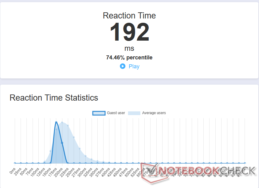 Время отклика при нажатии левой и правой кнопок было низким, несмотря на то, что мышь беспроводная. Мы также достигли среднего времени реакции 192 мс в бенчмарке Human Benchmark инструмент.