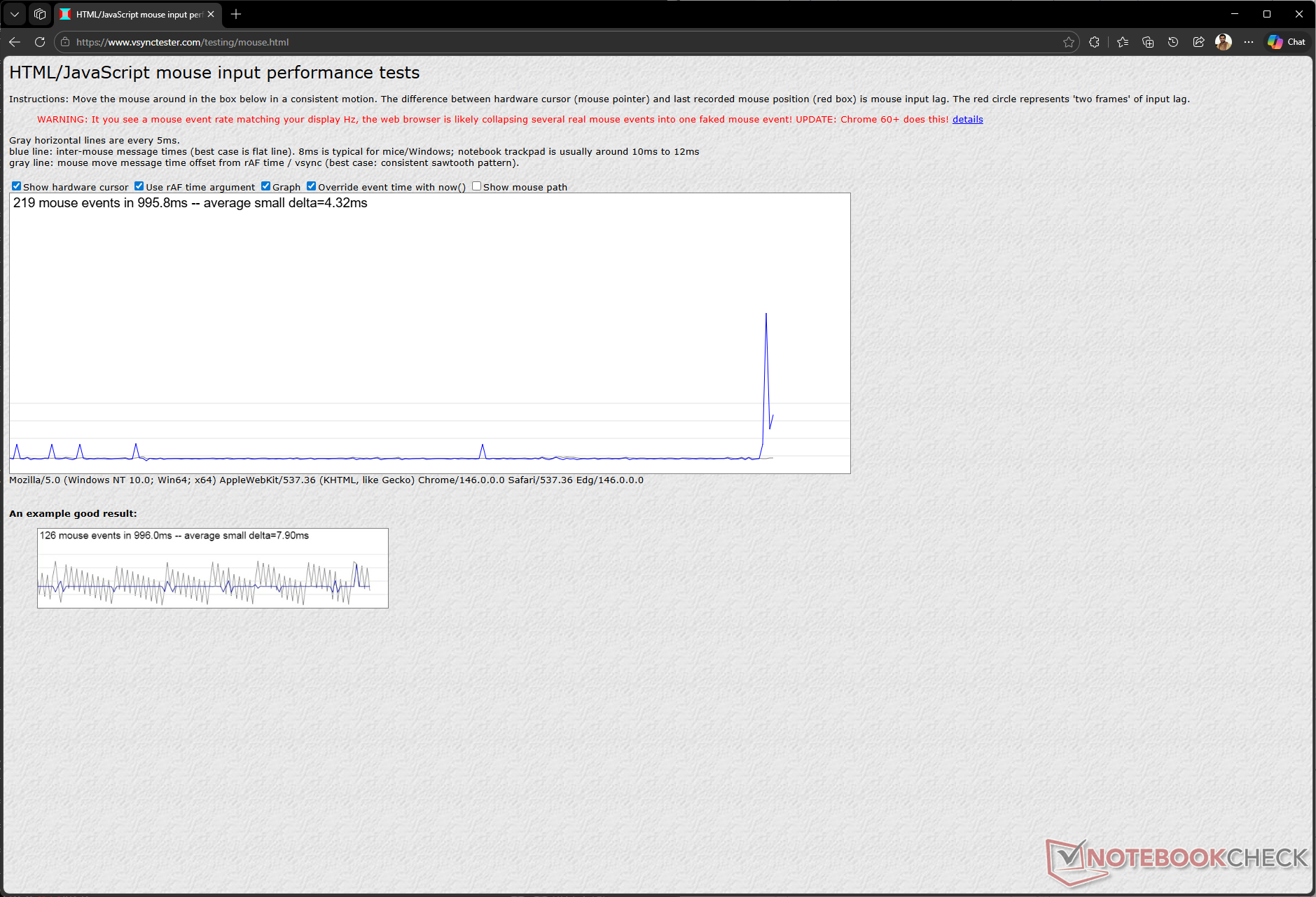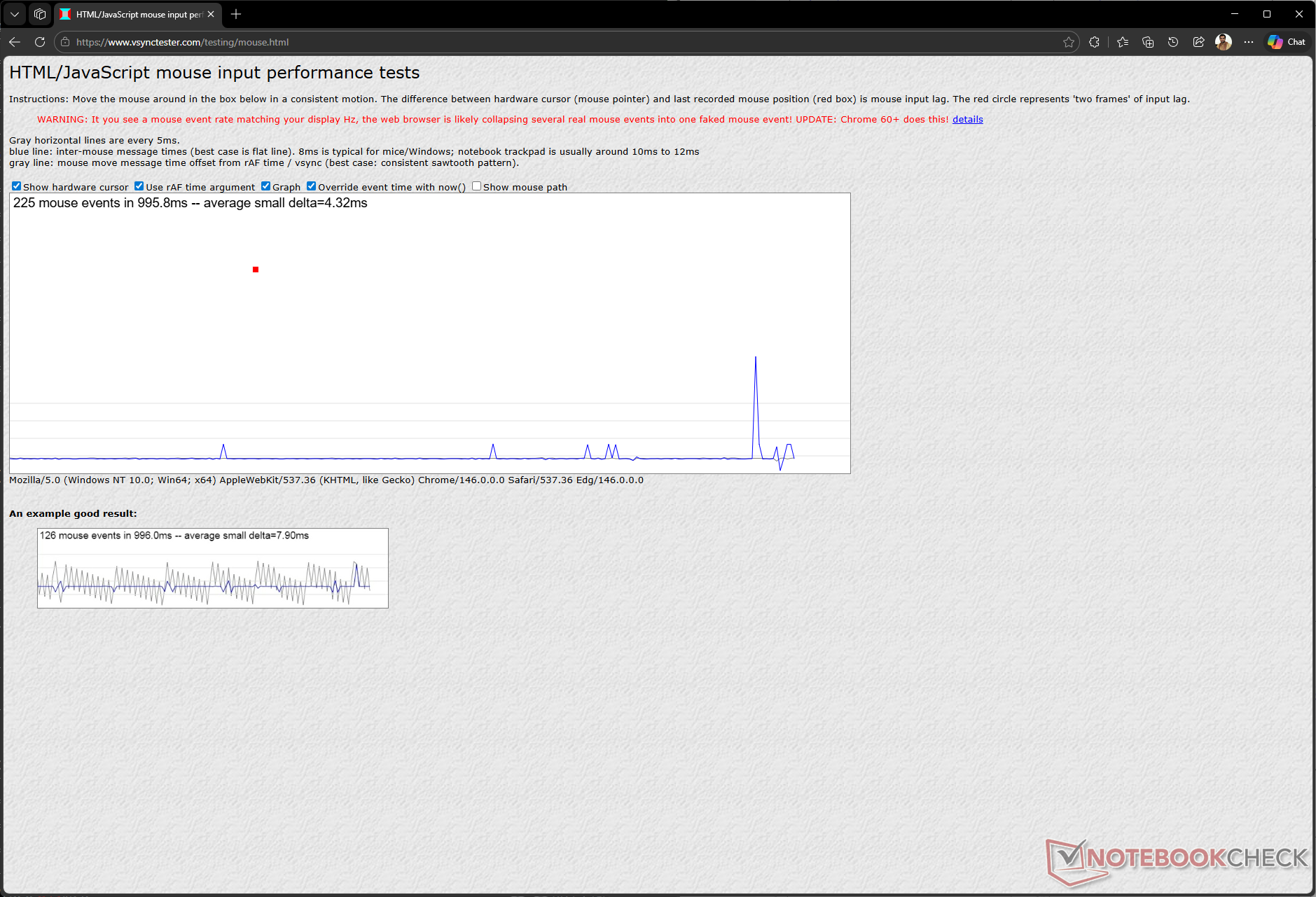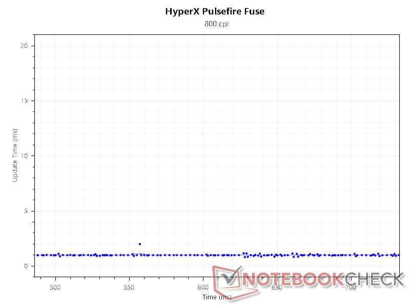 В соответствии с приведенными выше графиками частоты опроса, мы обнаружили, что интервал обновления постоянно составляет 1 мс при частоте 1,000 Гц и 800 DPI.