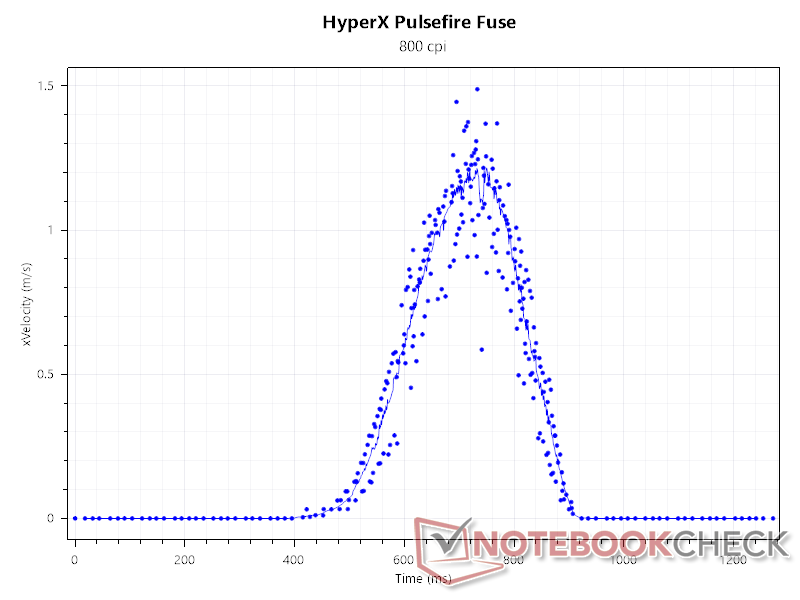 Ускорение и замедление Fuse Wireless до исходного положения показали приличные кривые SRAV, что говорит о том, что мышь практически не имеет ускорения сенсора, которое может негативно повлиять на игру.