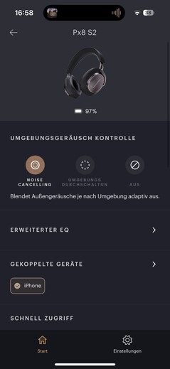 Положительным моментом является то, что активное шумоподавление работает превосходно - по крайней мере, для низкочастотных звуков. Гул автомобильных двигателей или шум поезда почти полностью подавляются при включенном ANC. Более высокие частоты, однако, остаются практически незатронутыми, поэтому голоса почти не подавляются - как и в большинстве конкурирующих моделей. Режим прозрачности, с другой стороны, работает впечатляюще хорошо: окружающие звуки и голоса доносятся четко и звучат почти так же естественно, как и без наушников.
