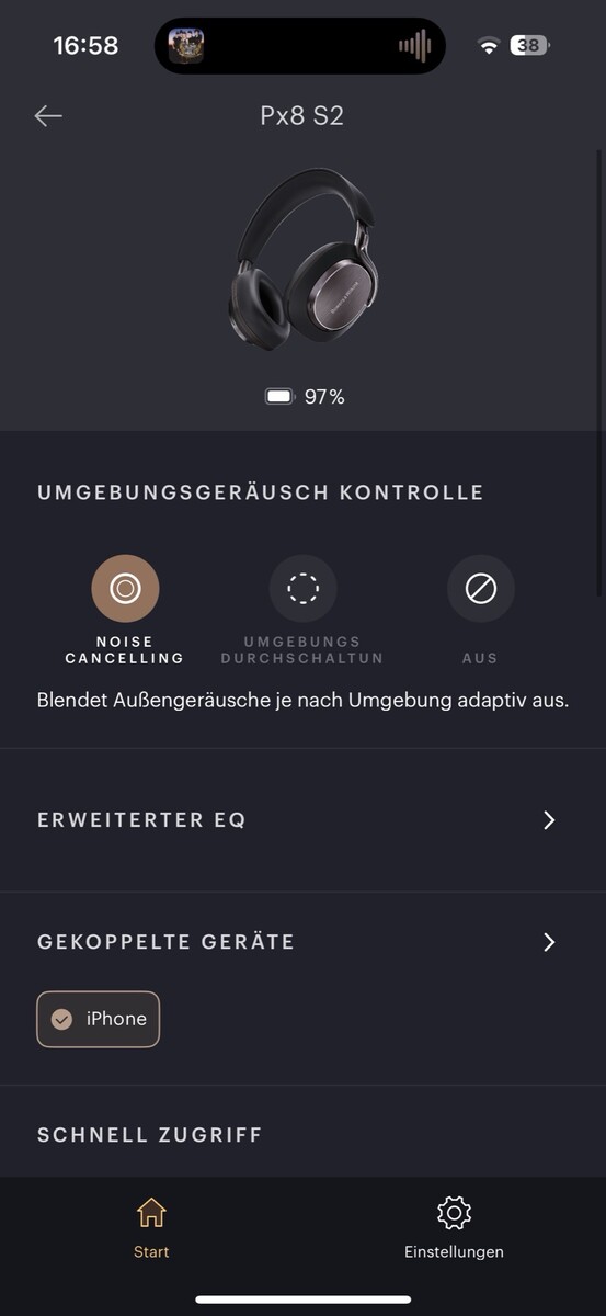 Приложение Bowers & Wilkins Music позволяет легко управлять подключенными устройствами. Оно также предлагает доступ к простому пятиполосному эквалайзеру, обновлениям прошивки и управлению ANC, и даже напрямую интегрирует музыкальные потоковые сервисы. Жаль, что B&W не включила больше интеллектуальных функций, таких как автоматическая настройка ANC или прозрачности в зависимости от местоположения пользователя.
