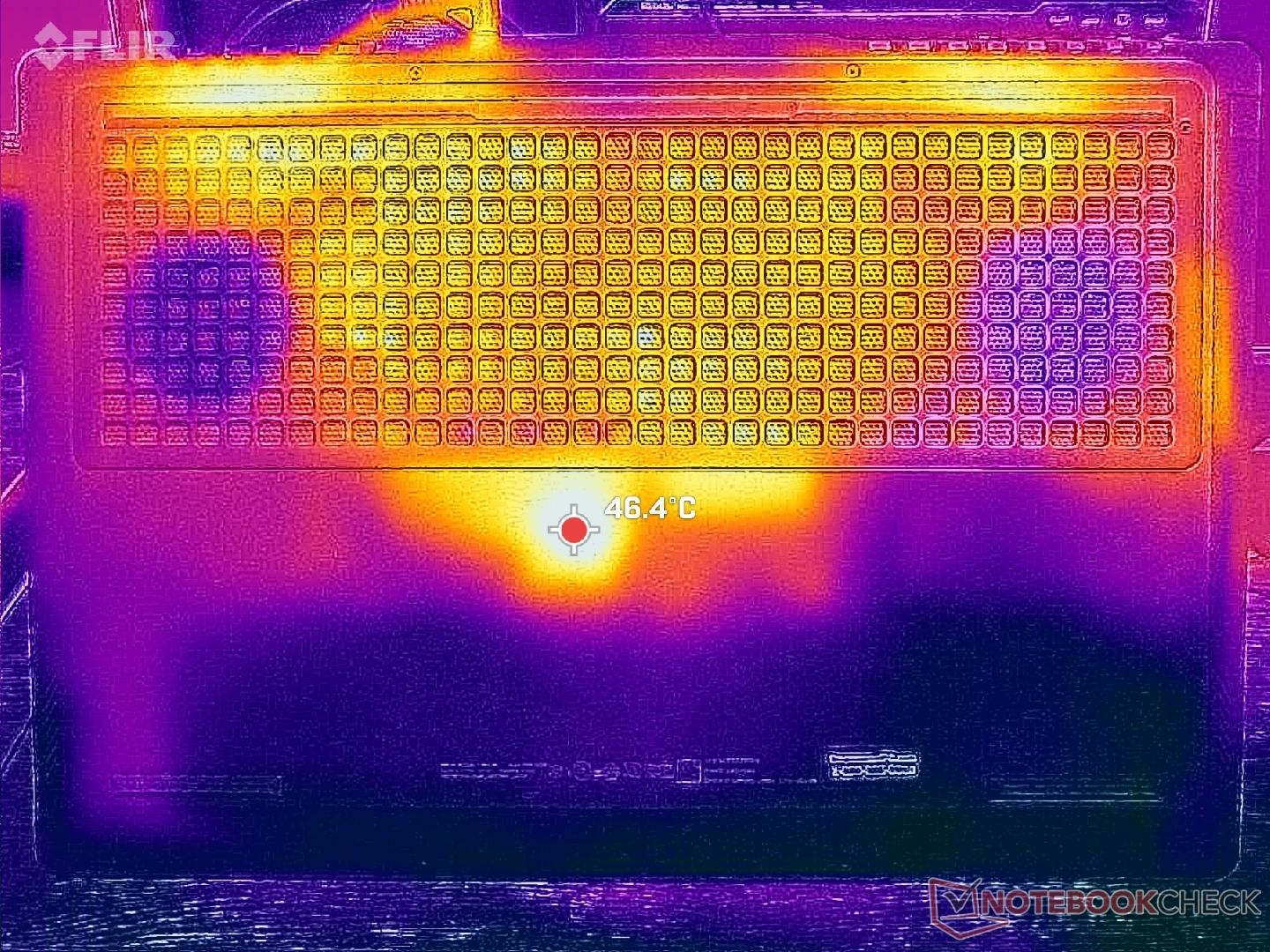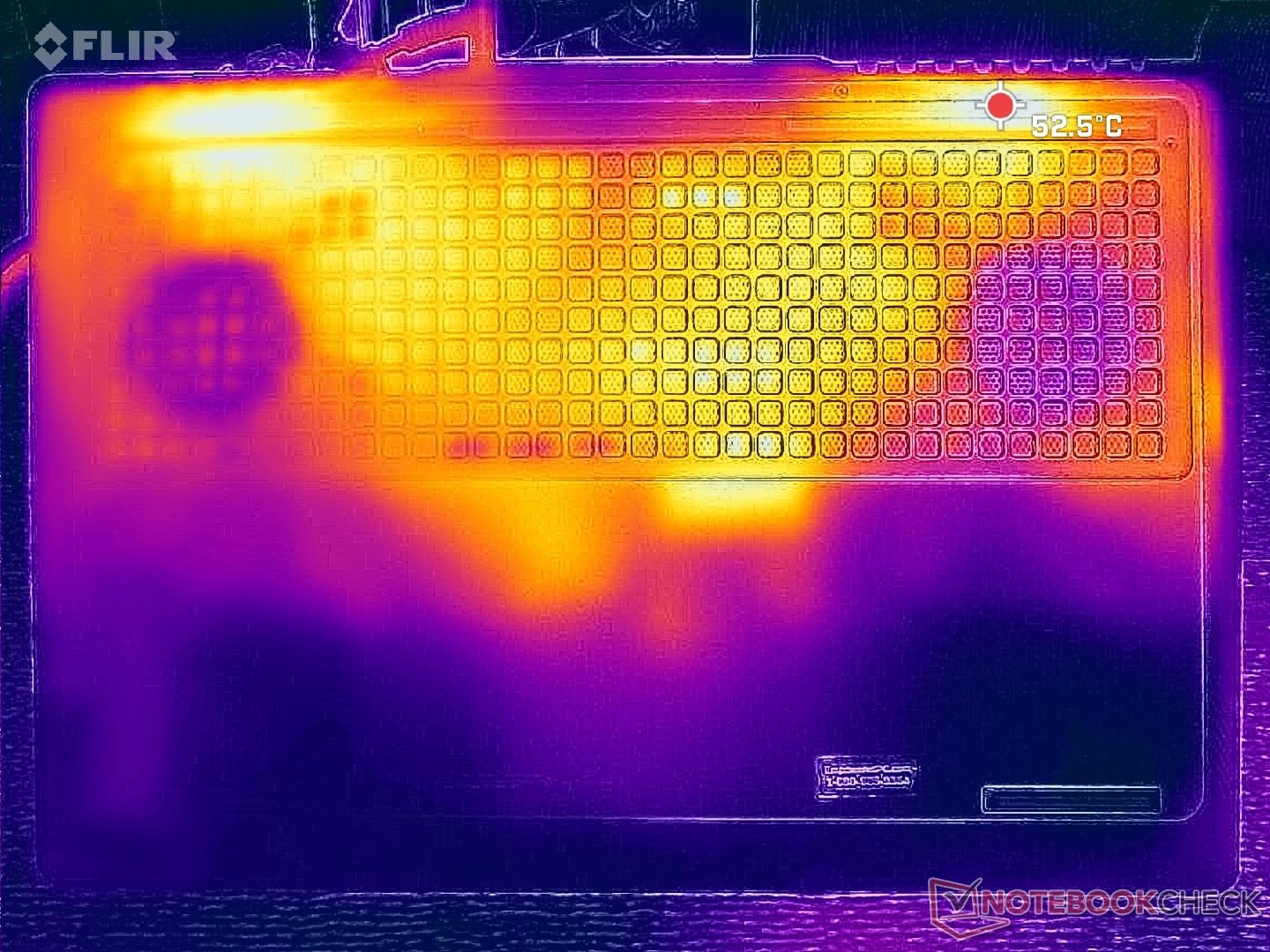Температура поверхности сильнее всего нагревается к центру клавиатуры, где горячие точки могут достигать почти 40 C во время игры. К счастью, клавиши WASD, нумпад и подставка для ладоней остаются гораздо более холодными.