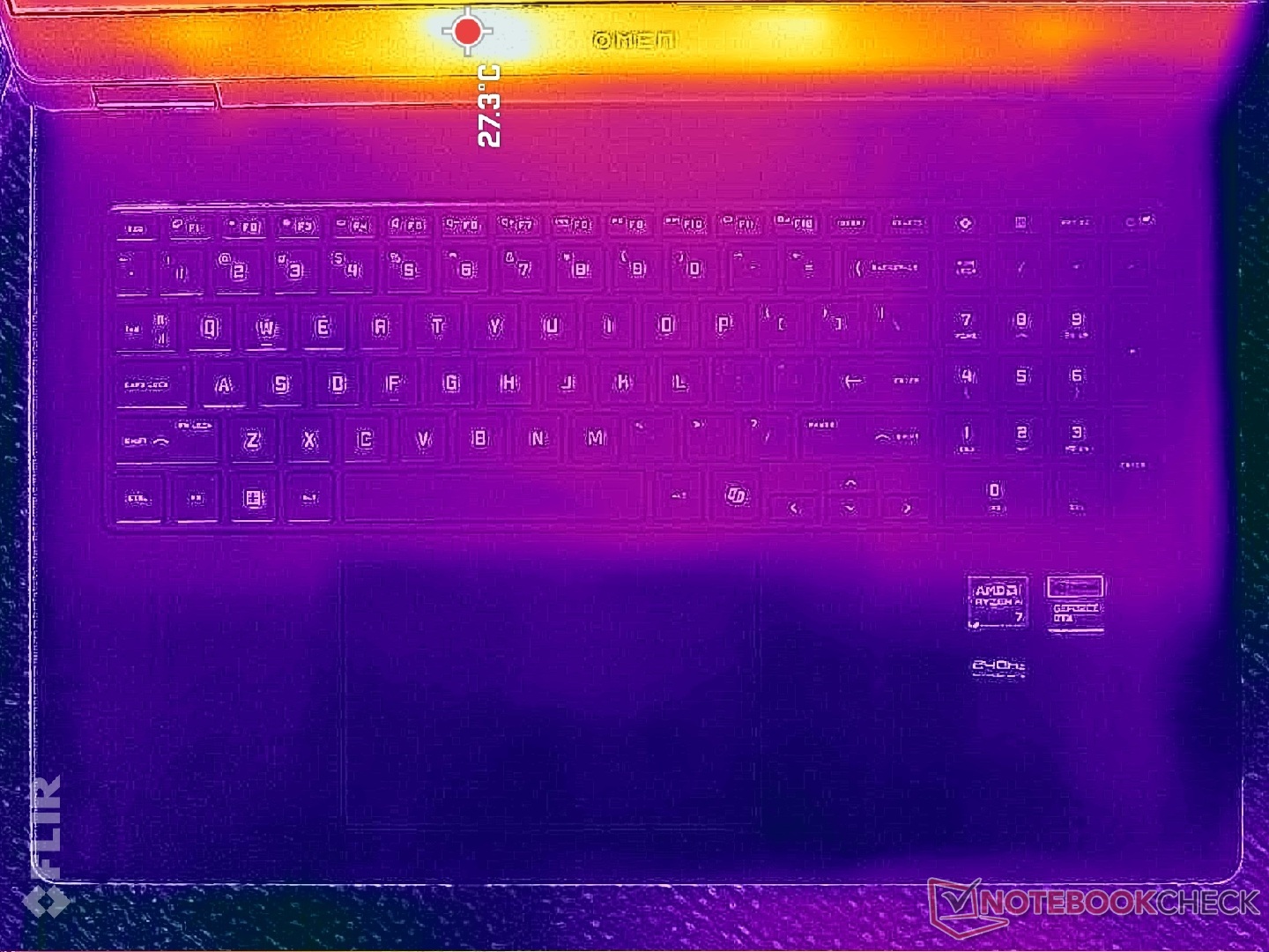 (±) 3: The average temperature for the upper side is 32.1 °C / 90 F, compared to the average of 33.9 °C / 93 F for the class Gaming.