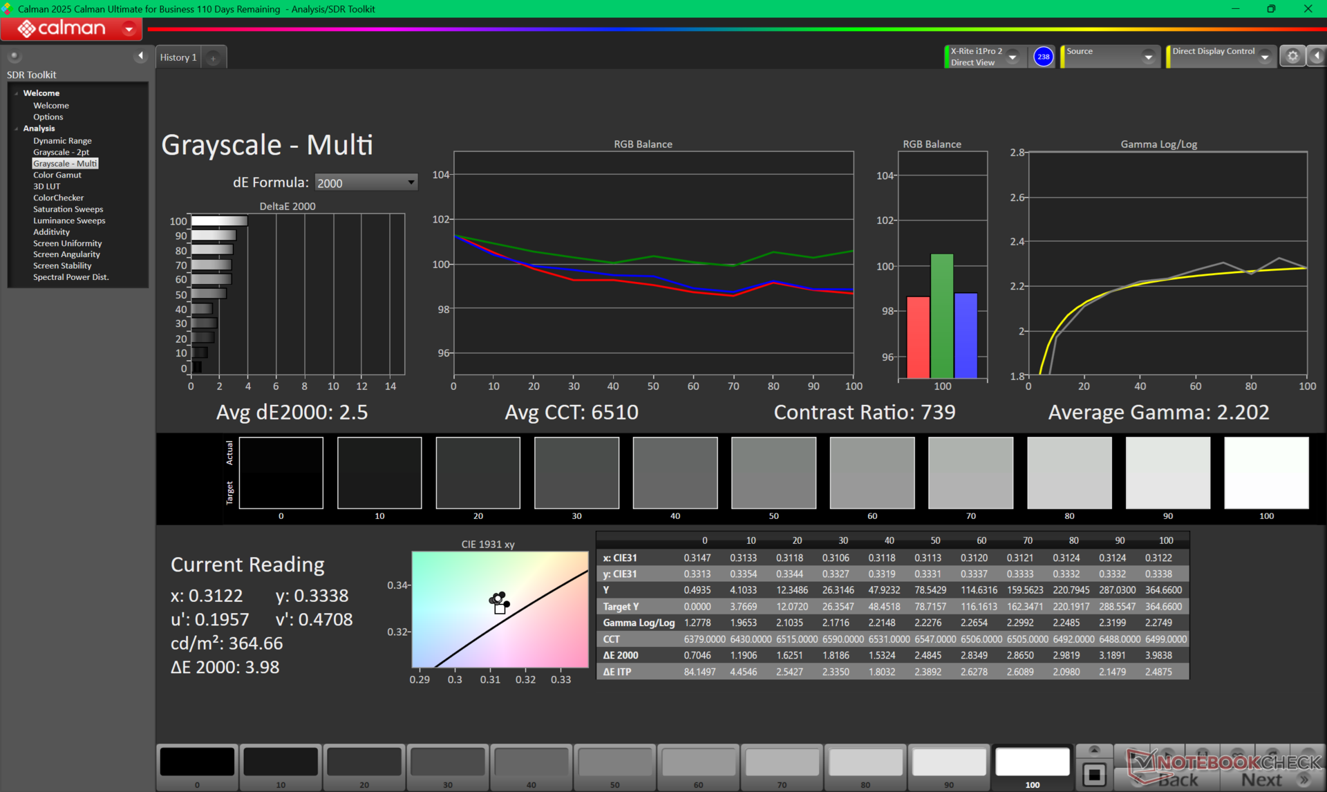 Из коробки дисплей хорошо откалиброван по стандарту sRGB, хотя его цветовая температура немного слишком теплая. Калибровка X-Rite устраняет этот небольшой недостаток, улучшая средние значения DeltaE для серого и цвета с 4.1 и 2.53 до 2.5 и 1.39, соответственно. Наш калиброванный профиль ICM можно бесплатно скачать выше.