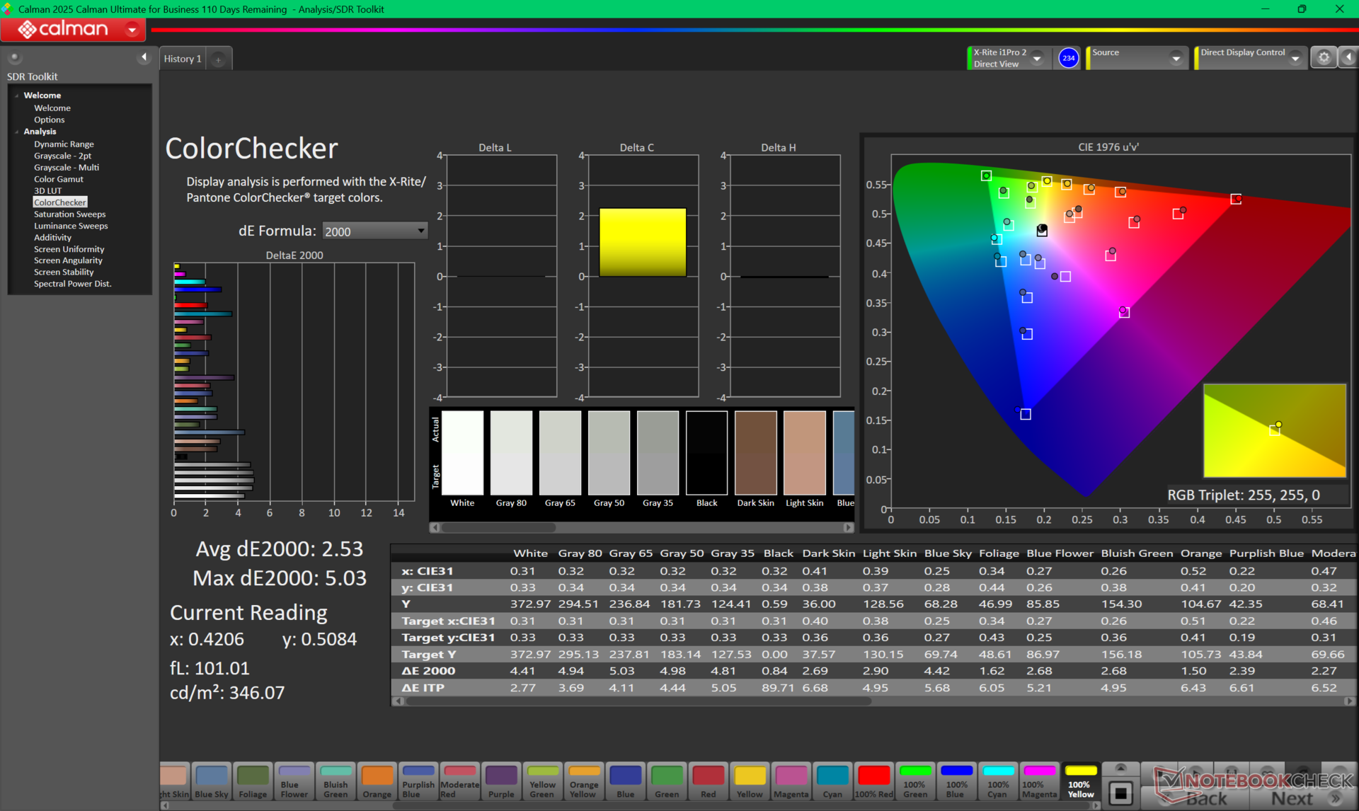 ΔE ColorChecker Calman: 2.53 | ∀{0.5-29.43 Ø4.78}