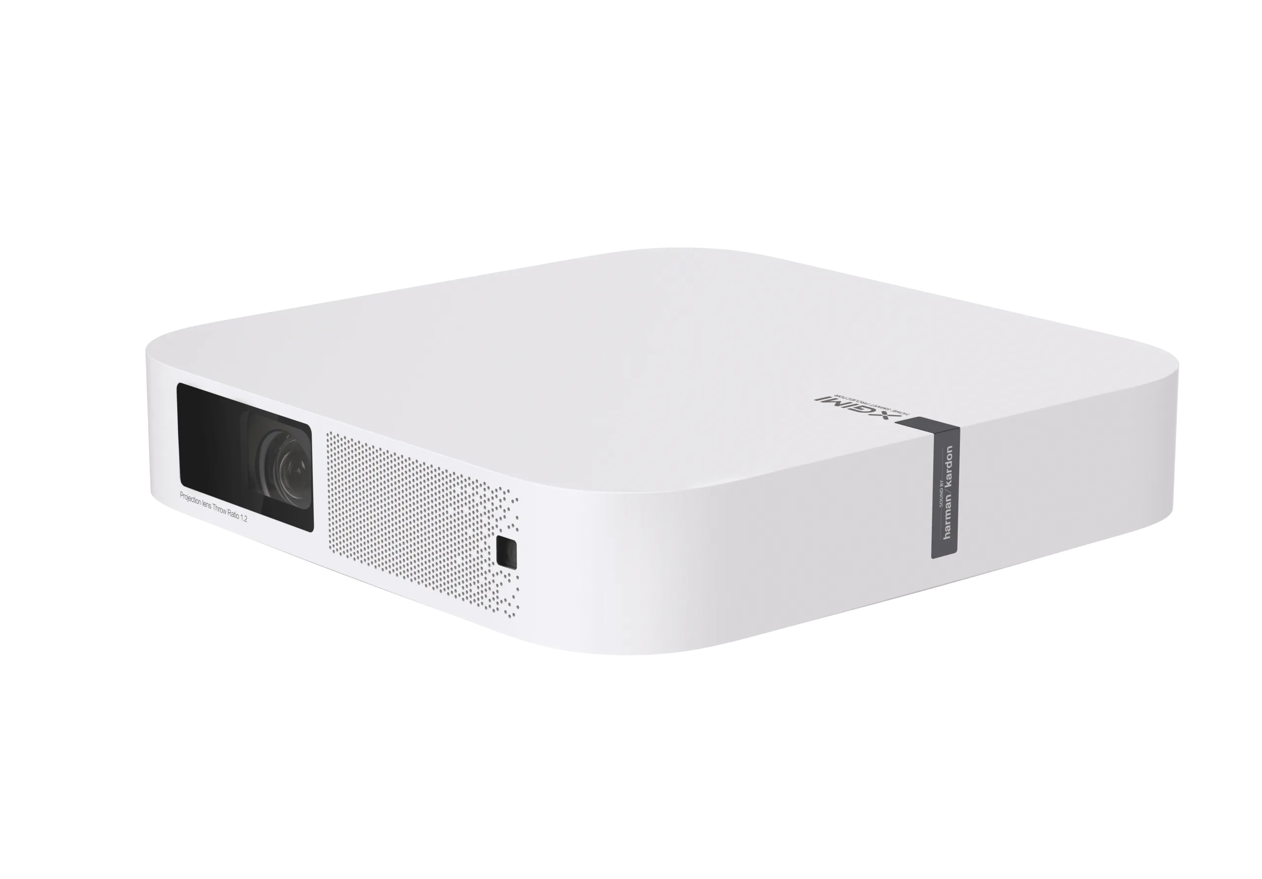 Elfin выглядит просто и аккуратно. Из общей глади равномерно-светлого корпуса выделяются лишь оптическая система; задняя панель с портами; логотип Xgimi. Матовый пластик корпуса хорошо скрывает отпечатки и жир от пальцев. Акрил поверх оптики и камеры замарывается намного охотнее, но быстро отчищается тряпочкой.