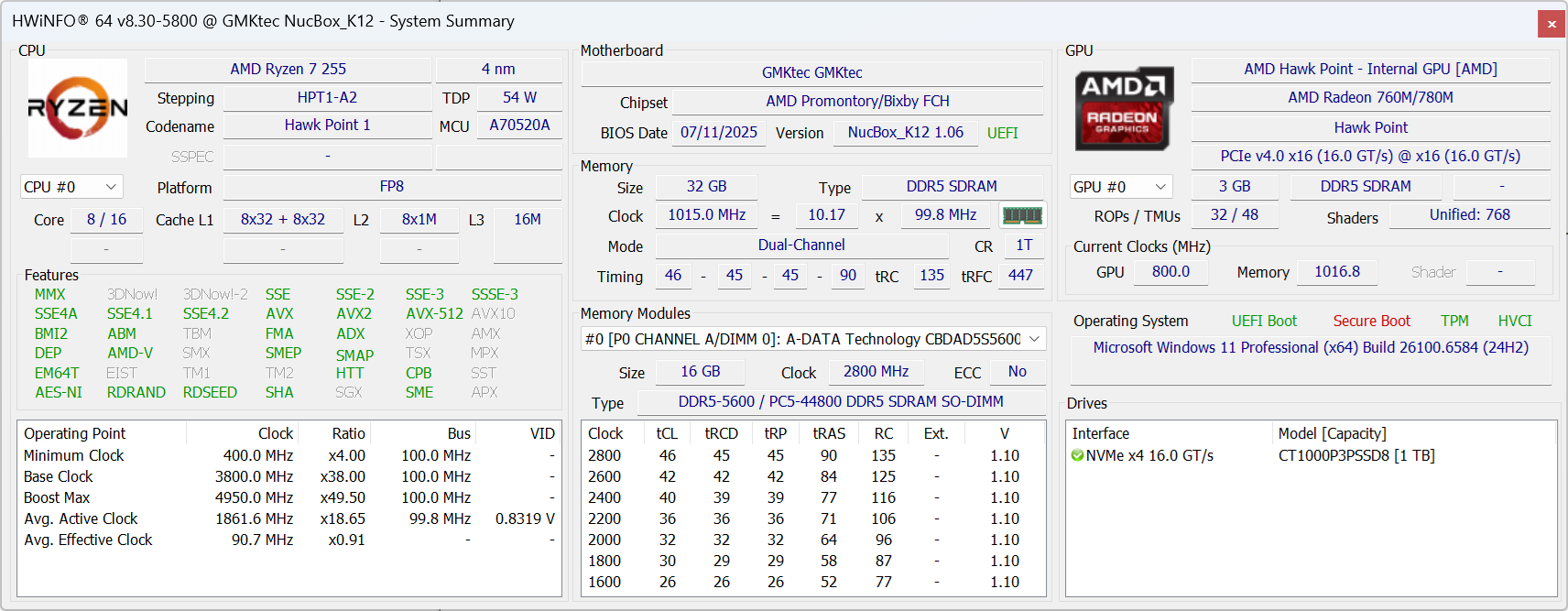 GMK NucBox K12 Ryzen 7 H 255, Radeon 780M, Crucial P3 Plus CT1000P3PSSD8, , x, | GMK NucBox K11 R9 8945HS, Radeon 780M, Crucial P3 Plus CT1000P3PSSD8, , x, | GMK EVO-X1 Ryzen AI 9 HX 370, Radeon 890M, Crucial P3 Plus CT1000P3PSSD8, , x, | Beelink SER9 Pro Ryzen 7 H 255, Radeon 780M, Crucial P3 Plus CT1000P3PSSD8, , x, | Geekom A9 Max, AI 9 HX 370 Ryzen AI 9 HX 370, Radeon 890M, Lexar NQ7A1, , x, | Minisforum EliteMini AI370 Ryzen AI 9 HX 370, Radeon 890M, Crucial P3 Plus CT1000P3PSSD8, , x, | |