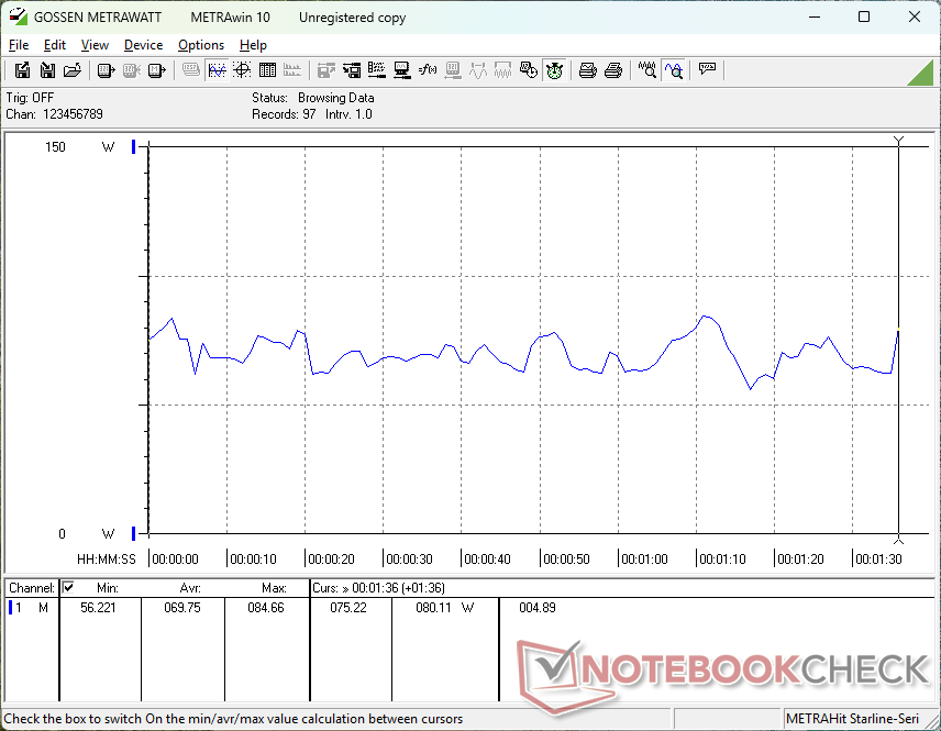 Cyberpunk 2077 ultra external monitor * (Watt) | 86.3 | 83 4% | 72.5 16% | 80.1 7% | 77.8 10% | 69.6 19% |