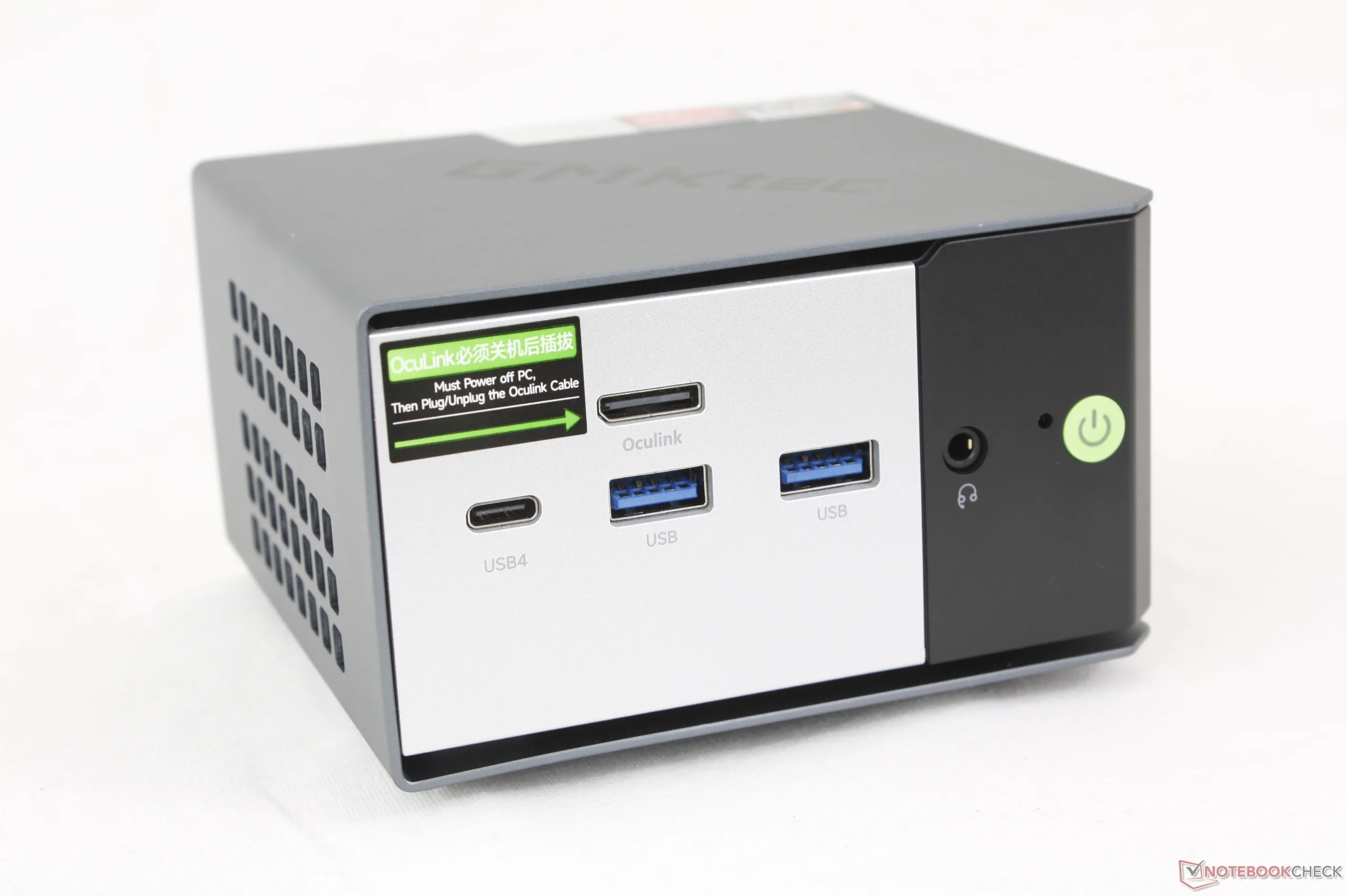 Корпус идентичен прошлогодней модели EVO-X1, которая по-прежнему остается одним из самых маленьких мини-ПК в линейке GMKtec. Опции портов не изменились, включая важный порт Oculink, который отличает эту модель от большинства конкурирующих мини-ПК.