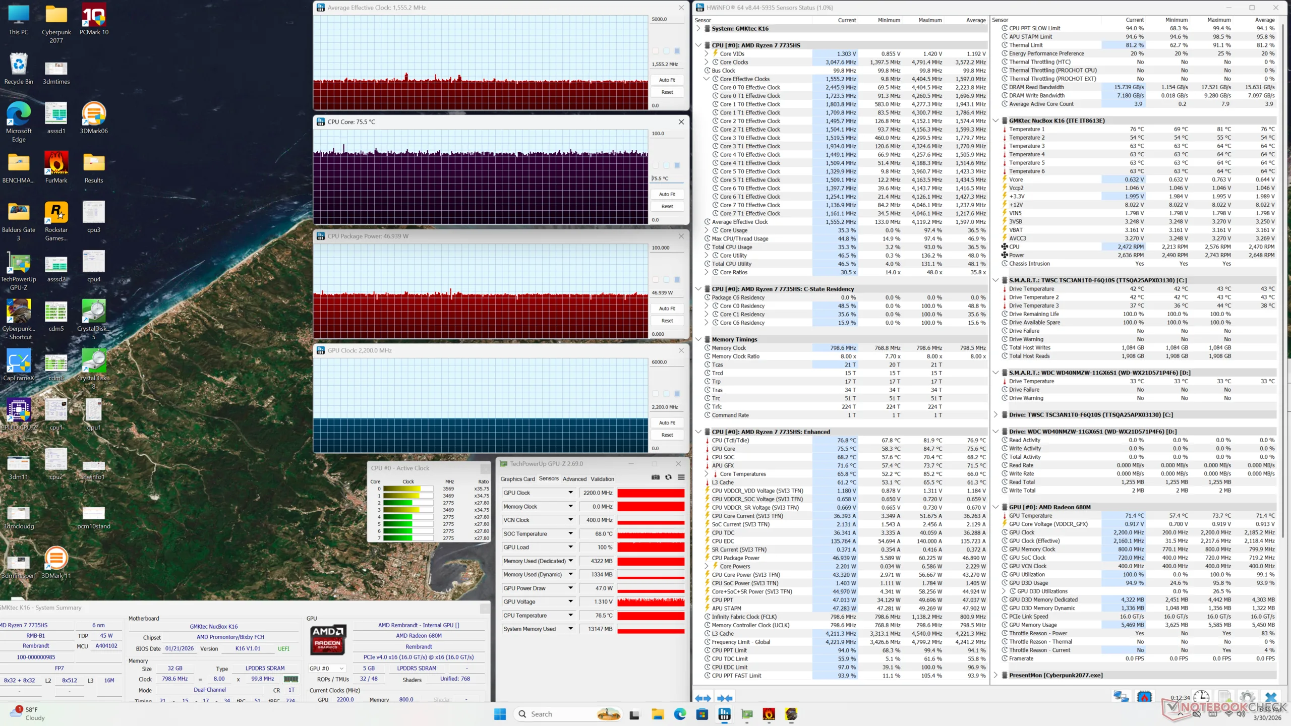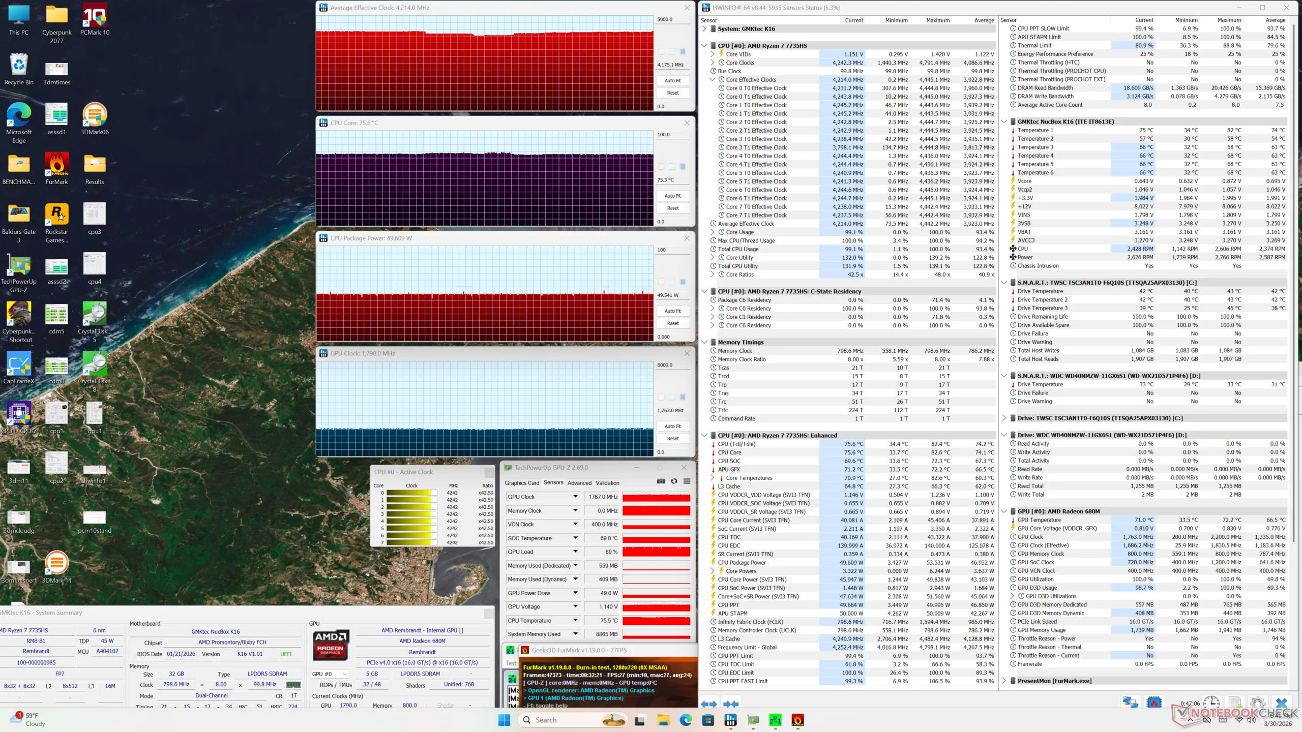 Тот же самый процессор Zen 3+ также ответственен за многие недостатки системы. Старый процессор показывает свои недостатки при анализе энергопотребления, поскольку производительность на ватт не так высока, как у некоторых последних альтернатив от Intel, включая собственный GMK NucBox K13. Графическая производительность также ниже среднего даже для интегрированного решения.