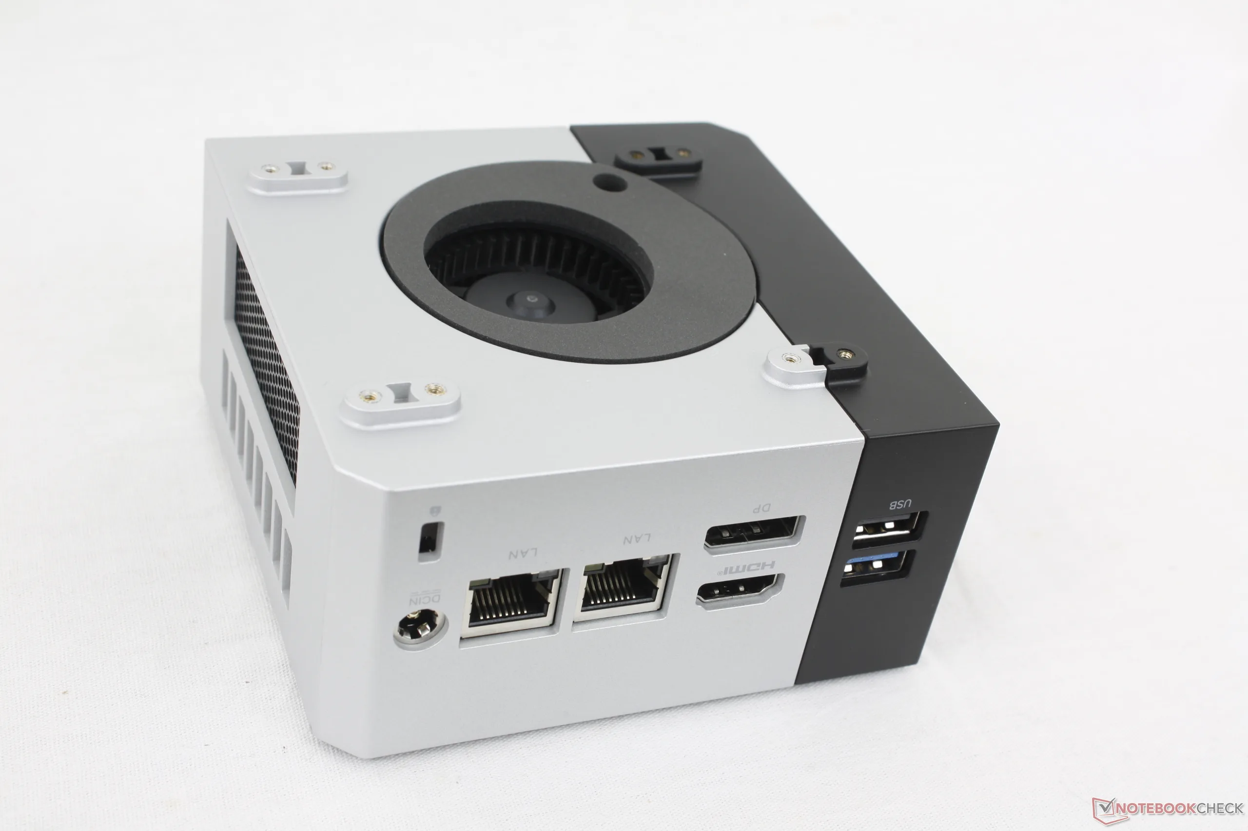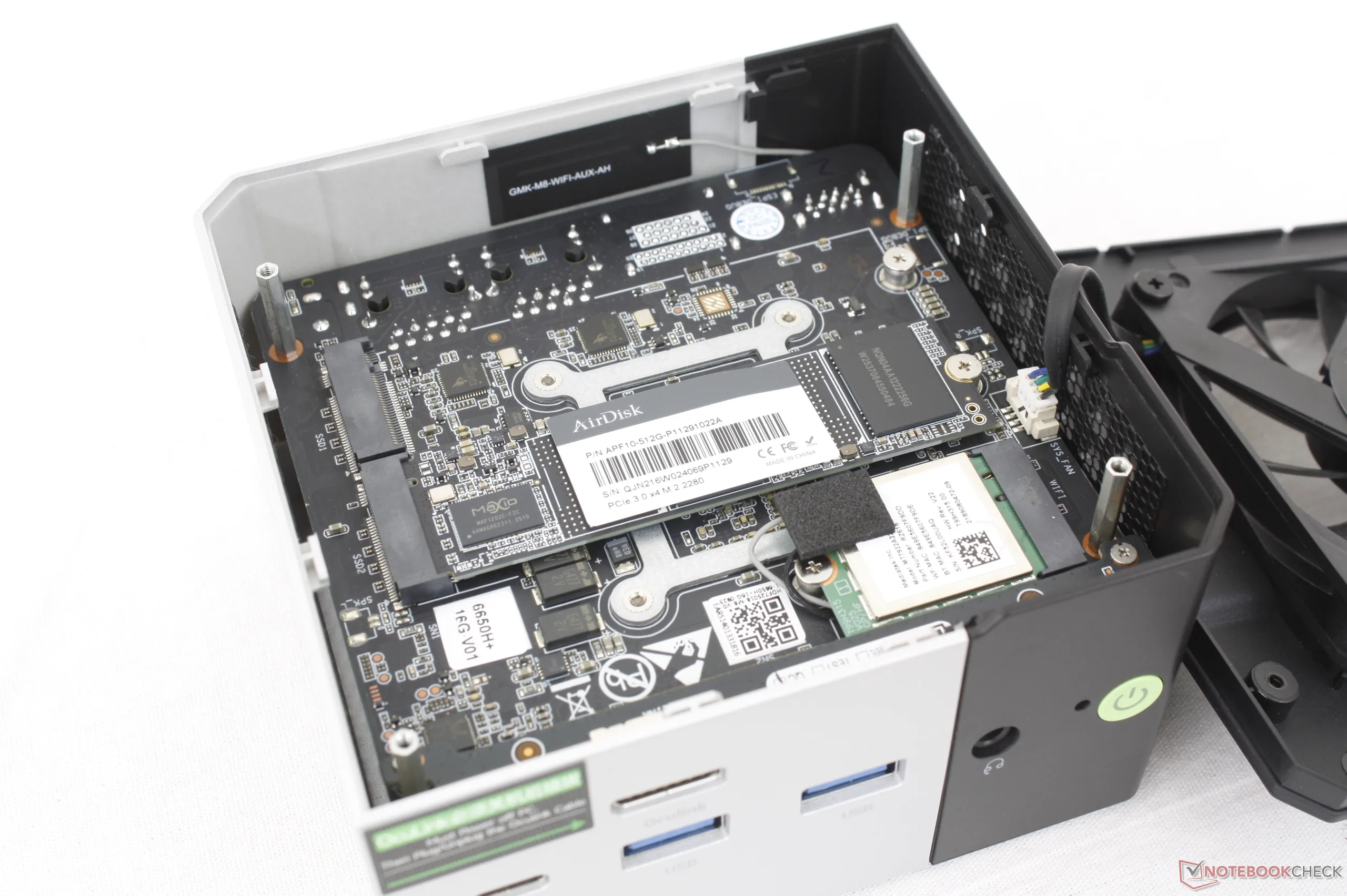 Дизайн корпуса и порты позаимствованы у модели EVO-X1 а не с недавней модели NucBox K12 поскольку NucBox M8 предназначен для тех же профессиональных пользователей, что и EVO-X1. Внешний металлический корпус не такой темный, как у EVO-X1, но материалы остались теми же, несмотря на большую разницу в цене.