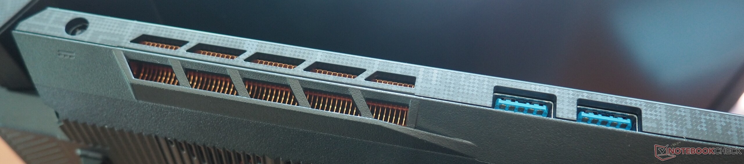 Katana 17 HX относится только к (верхнему) среднему классу, в основном благодаря 8 ГБ VRAM. Вверху: Благодаря двум банкам SO-DIMM ничто не мешает обновить 16 ГБ ОЗУ (2х 8 ГБ DDR5-5600). Однако несколько разочаровывает тот факт, что MSI интегрировала только один слот M.2.