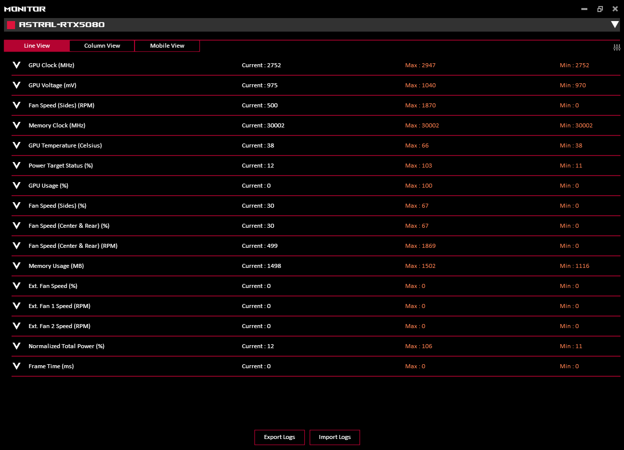 | Asus ROG Astral GeForce RTX 5080 OC Edition (Idle: 77 W) | |
