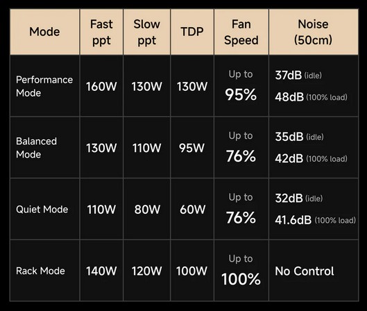 Minisforum MS-S1 Max впечатляет своим низким энергопотреблением по отношению к предлагаемой им вычислительной мощности. В режиме ожидания тестовое устройство потребляет всего 7-10 Вт и, вместе с GMKtec EVO-X2 самые низкие показатели в этом сравнении. Даже под нагрузкой MS-S1 Max работает достаточно экономично, несмотря на кратковременные пики мощности процессора до 160 Вт. В сочетании с высокими результатами тестов это дает в целом отличную эффективность.