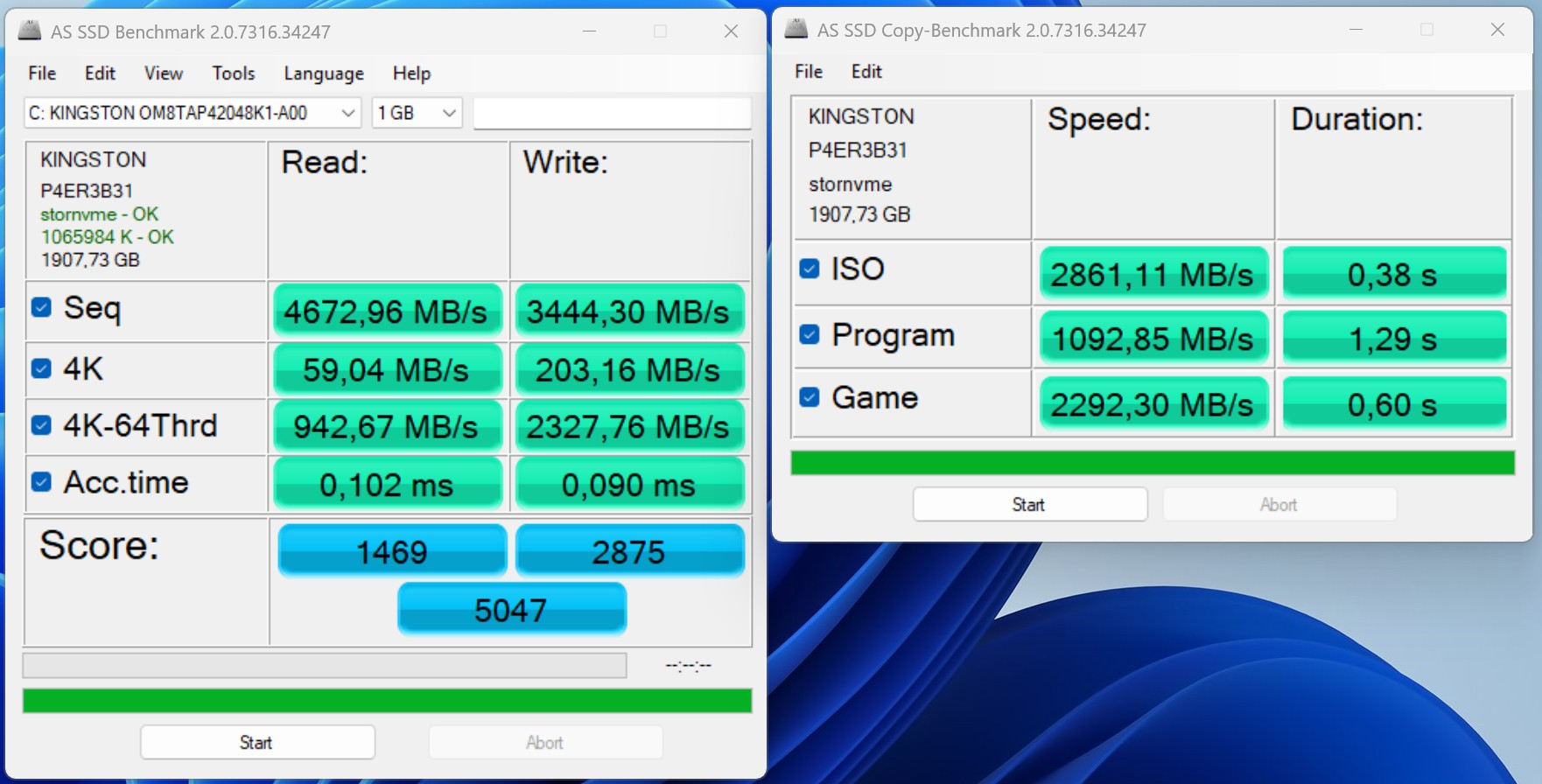 Connectivity - USB 3.x / USB4 / TB - AS SSD Seq Read Test (1GB) | |