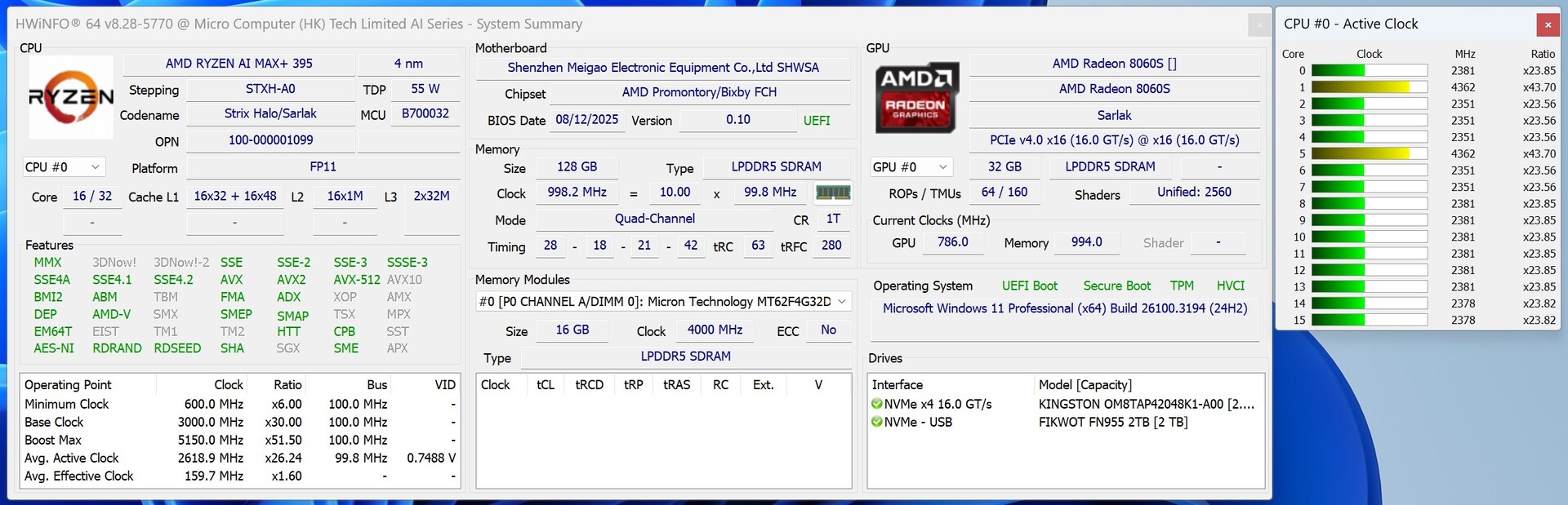 Minisforum MS-S1 Max - один из самых мощных мини-ПК, доступных на сегодняшний день. Он сочетает в себе AMD Ryzen AI Max+ 395 с Radeon 8060S и 128 ГБ оперативной памяти LPDDR5X-8000, из которых iGPU может использовать до 96 ГБ - преимущество для локальных экземпляров ИИ.