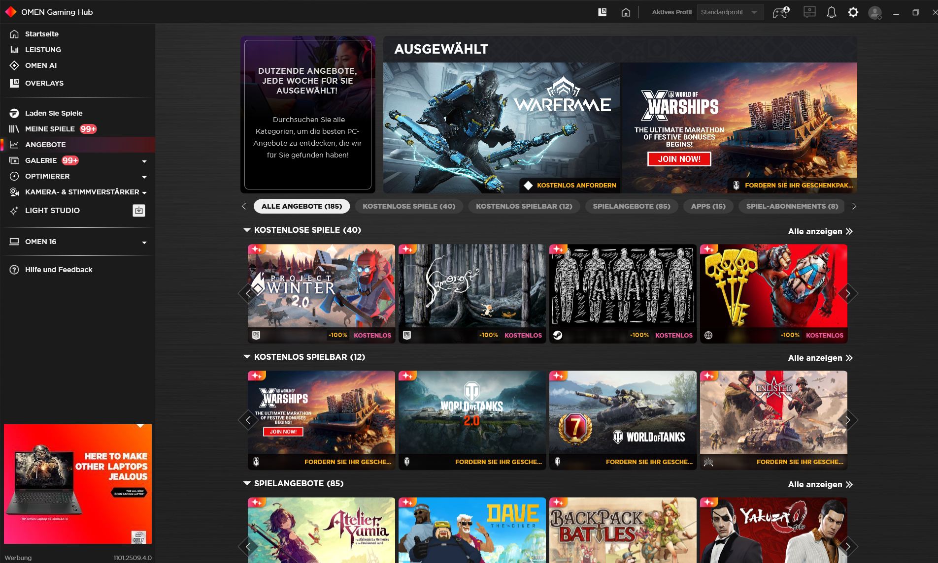 Поэтому еще более обидно, что компания HP превратила это замечательное в остальном устройство в рекламный щит. Так называемое приложение Gaming Hub - где мы должны только настраивать режимы производительности, эффекты освещения или, возможно, переключать MUX - настолько перегружено, что в нем действительно трудно ориентироваться.