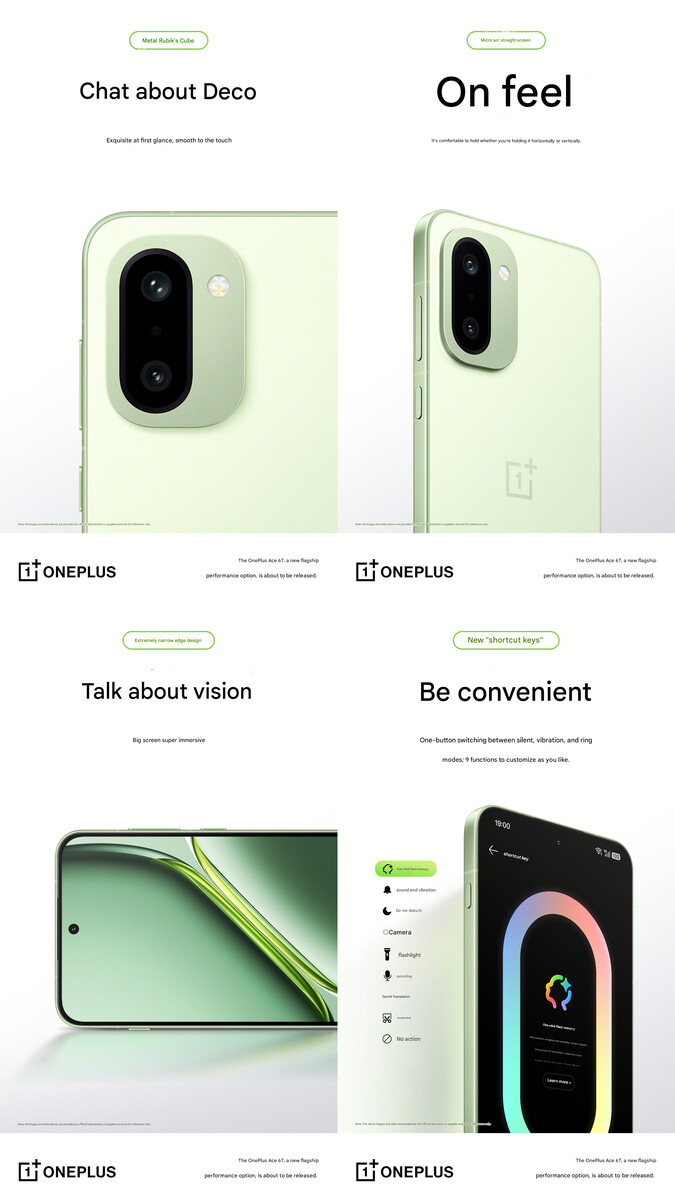 Кроме того, фотографии подтвердили, что OnePlus Ace 6T будет поставляться с двойной камерой на задней панели, с похожим на OnePlus 15 островком камер. Хотя бренд пока не подтвердил это, эти две камеры как ожидается, будут 50 МП сенсоры. Однако компания подтвердила, что телефон будет оснащен прямым дисплеем и легким корпусом.
