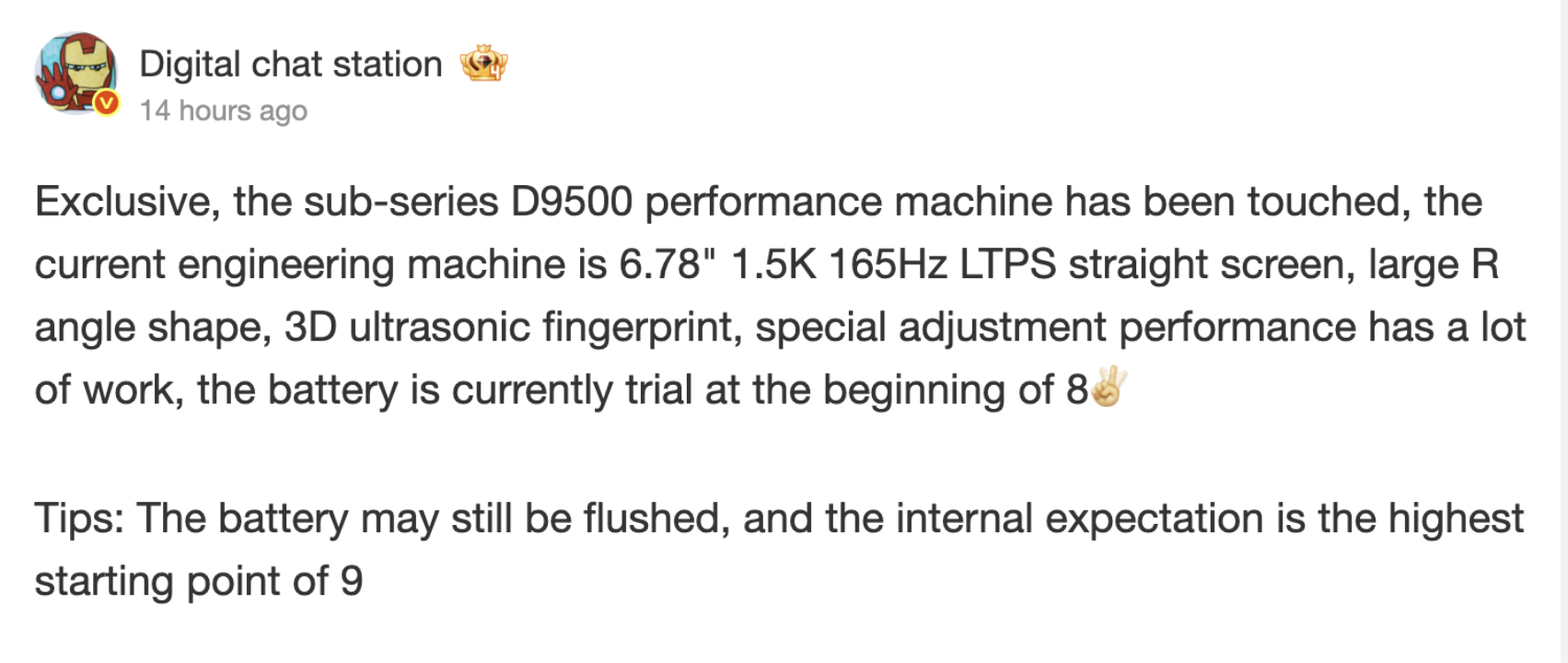 Предположительно, MediaTek будет продавать этот чип как Dimensity 9500 Plus, поскольку в прошлом году в Ace 5 Ultra использовался Dimensity 9400 Plus. Более того, Digital Chat Station добавляет, что в неназванном устройстве этот чипсет сочетается с 6,78-дюймовым OLED-дисплеем с разрешением 1,5K и частотой обновления 165 Гц, но без настоящей поддержки переменной частоты обновления.