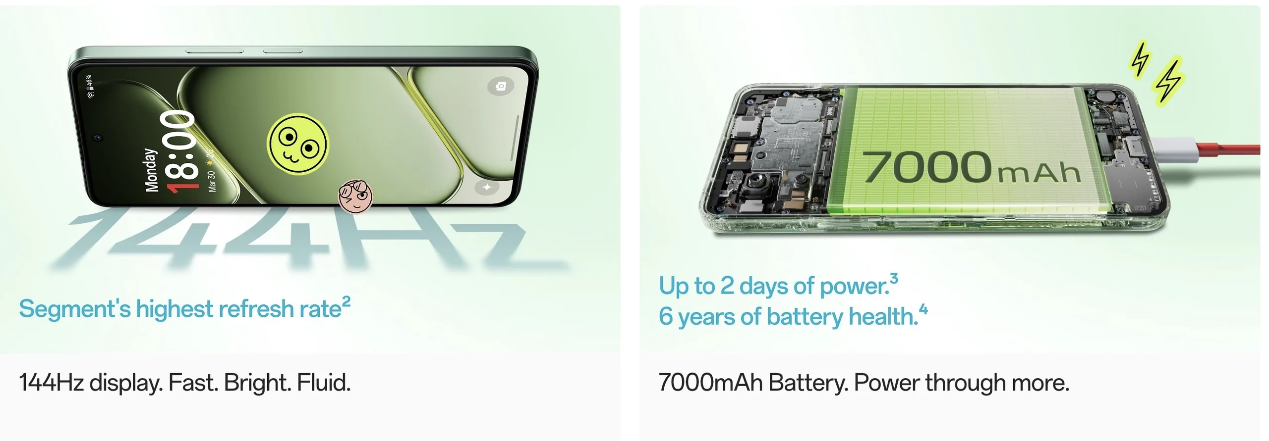 Телефон будет работать на Dimensity 7400 Apex, окта-ядерном чипсете MediaTek, основанном на 4-нанометровом техпроцессе. OnePlus показал, что он набирает около 1,03 миллиона баллов в тесте AnTuTu V11, в варианте с 8 ГБ оперативной памяти и 256 ГБ хранилища. Компания утверждает, что устройство будет поддерживать 90 FPS в играх BGMI и COD Mobile. В то же время, он будет поддерживать 144 FPS в некоторых играх, включая Subway Surfers.