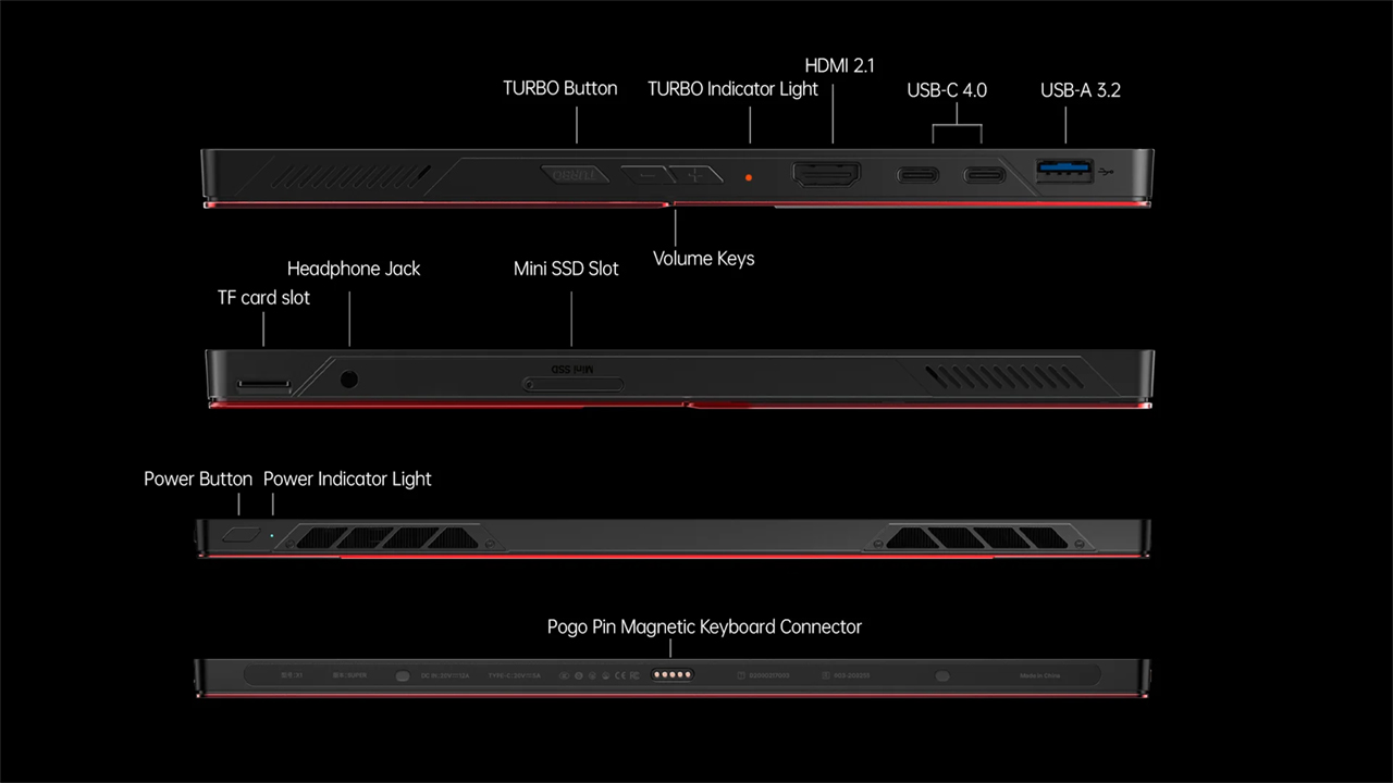 Конфигурация портов также совпадает с OneXPlayer Super X, а Super V оснащен следующими портами: