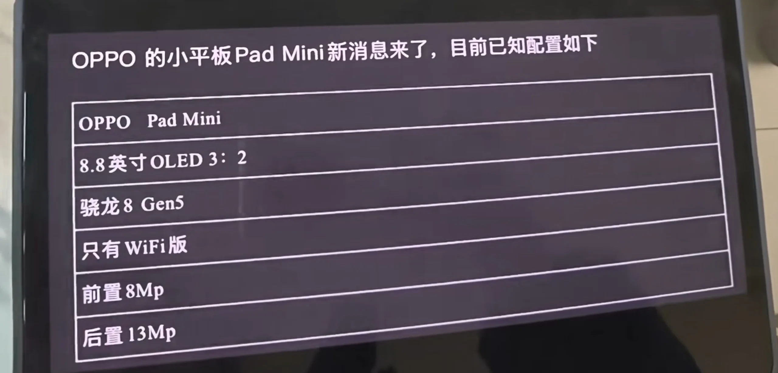 Как сообщается, мы видим 8,8-дюймовый OLED-дисплей с высокой частотой обновления, что уже ставит его в прямую конкуренцию с Huawei MatePad Mini.
